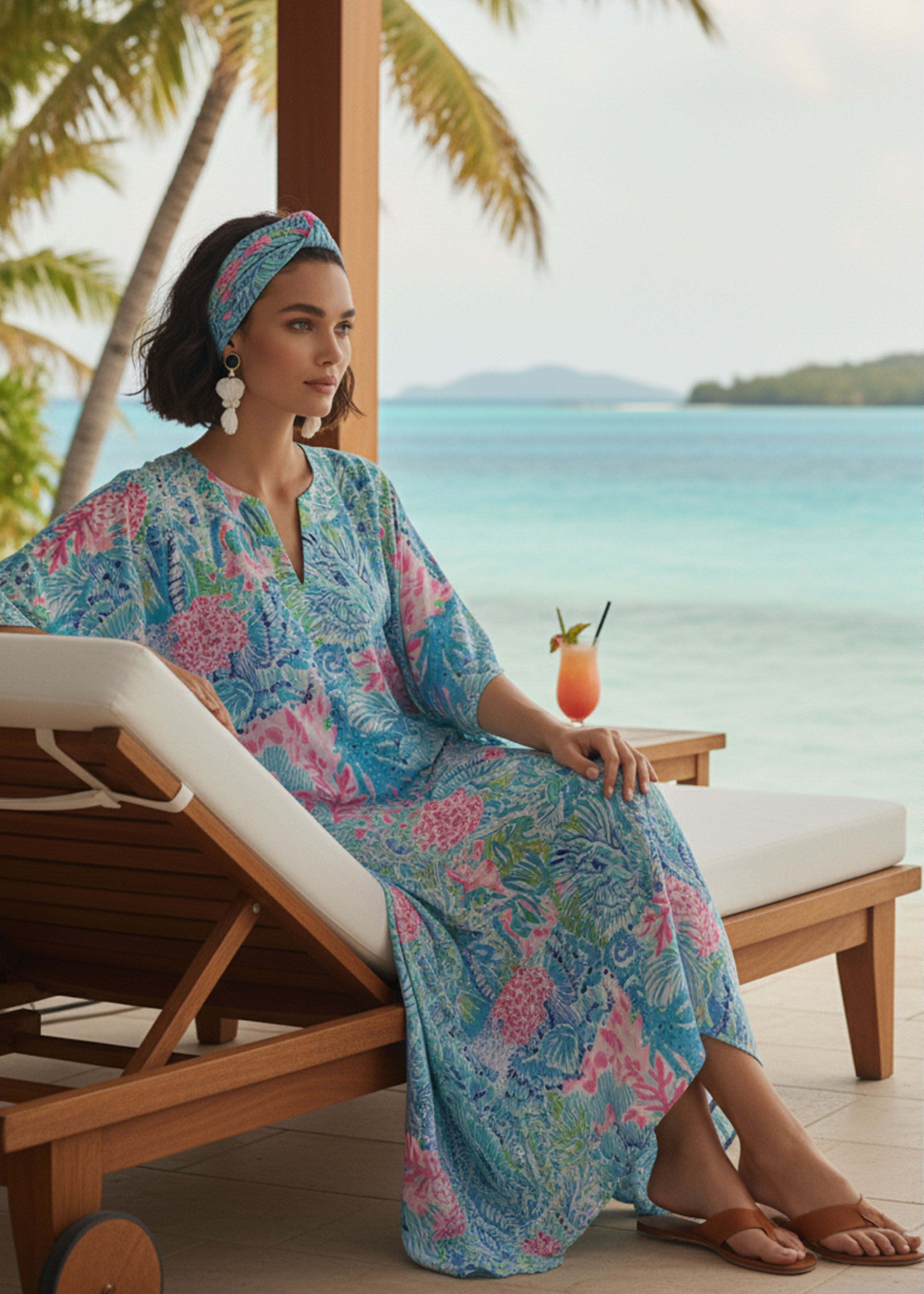 Crafted from lightweight silk, the Aviva Dress drapes fluidly over the body, reflecting light and movement with every step. The matching headband completes the look — relaxed, feminine, and timeless.