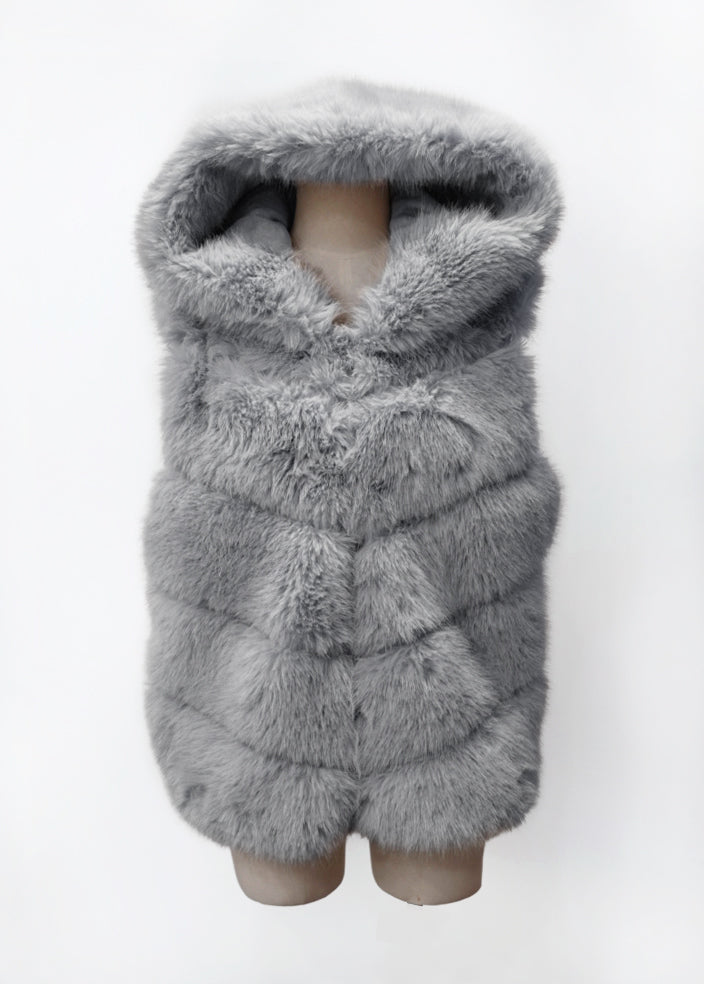 - Crafted with plush vegan fur and a soft brushed lining for warmth, this hooded vest blends comfort with modern edge. The open front is finished with sleek vegan leather trim and side pockets. Exceptionally warm, it’s the perfect piece to elevate your autumn style.