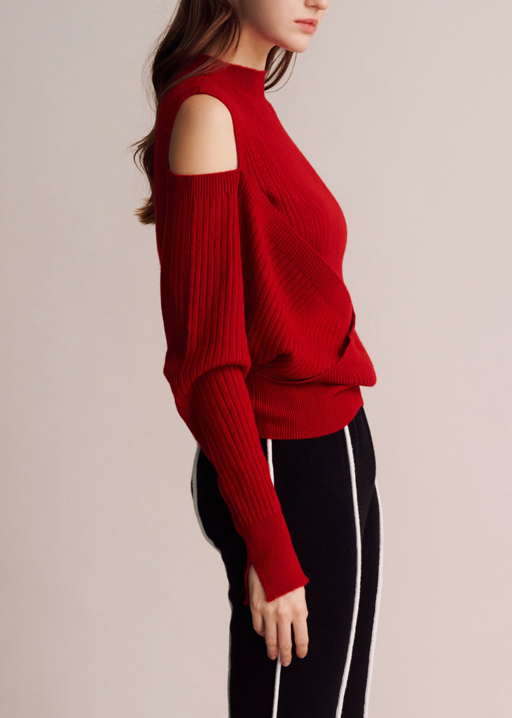 Crafted in striking red, this top symbolizes passion, energy, and connection. Whether worn alone or layered, it blends structure and fluidity with a dynamic edge.