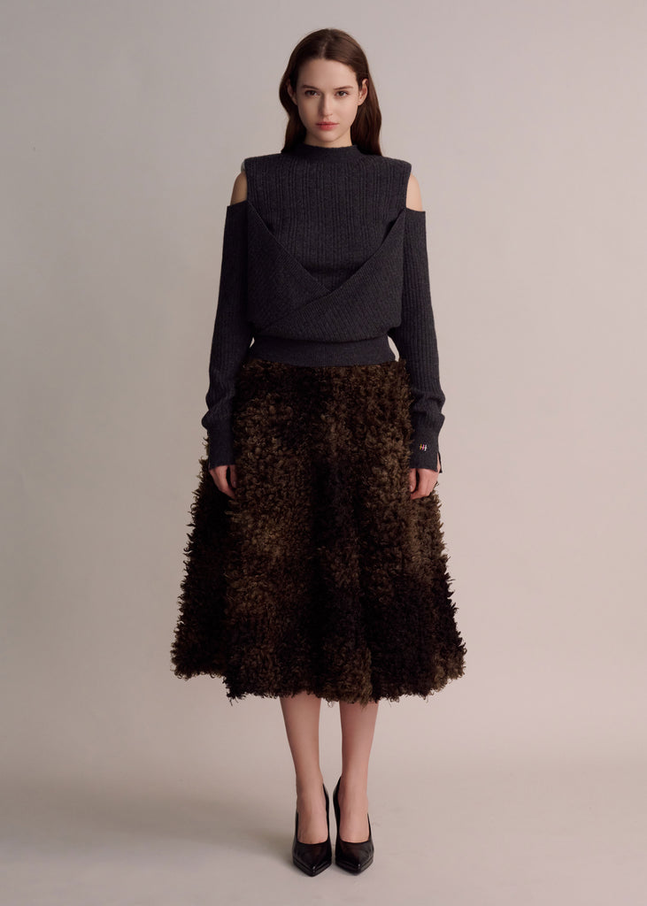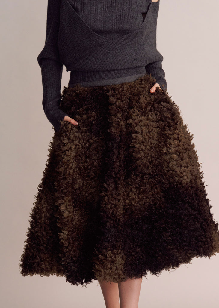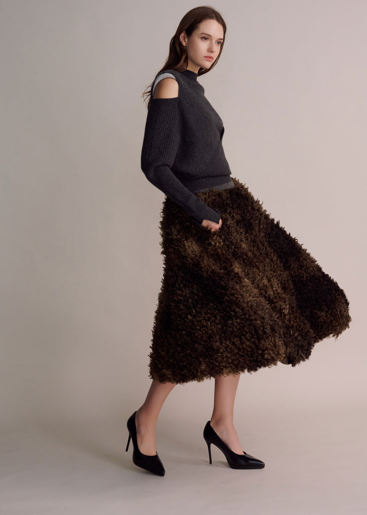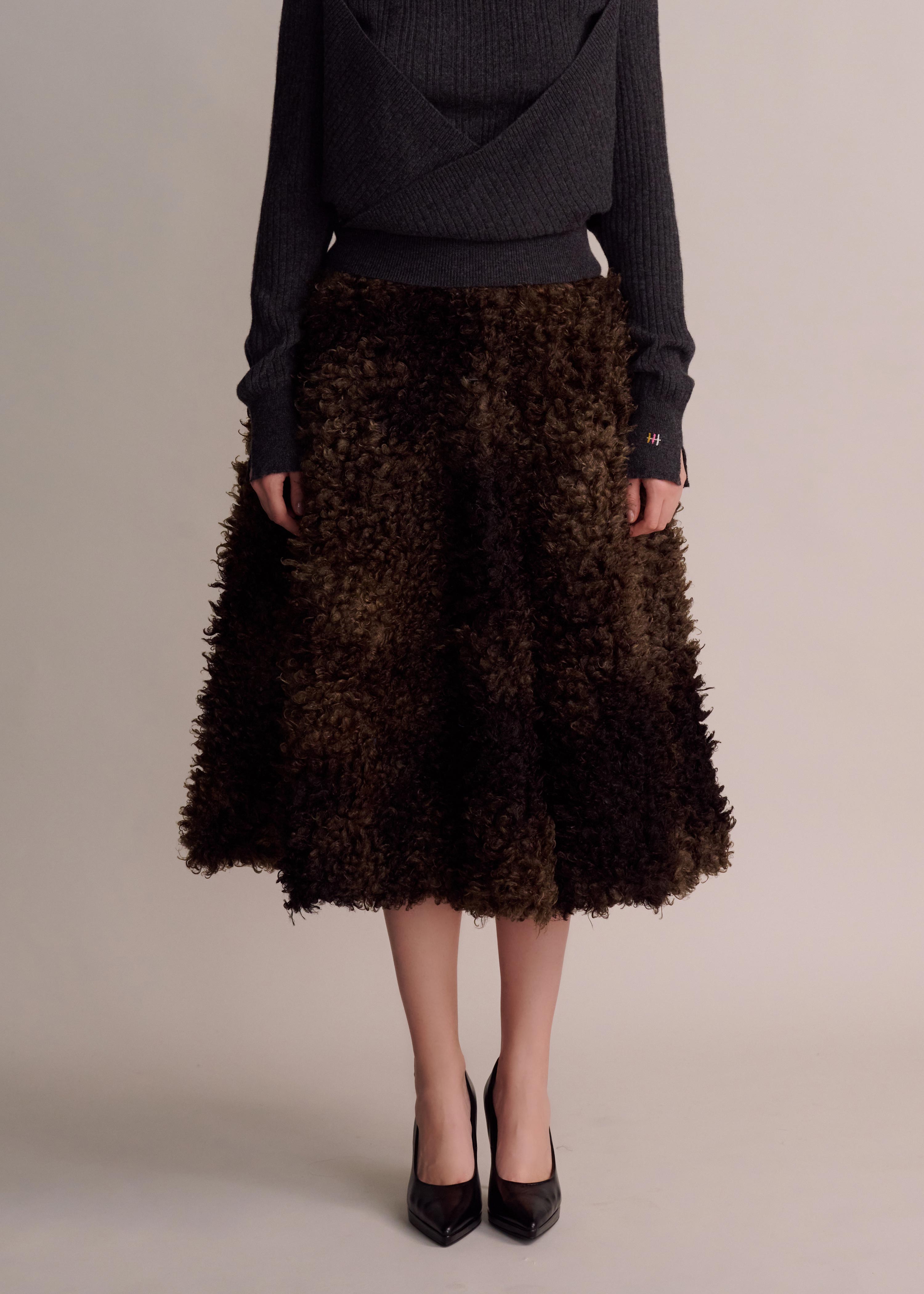 - Blending sustainability with luxury, the Tammy skirt reflects the spirit of Connections. The plush vegan fur creates a bold, tactile statement, while the upcycled cashmere waistband adds softness and refinement. Designed for warmth and elegance, it embodies the beauty of transformation and conscious craftsmanship.