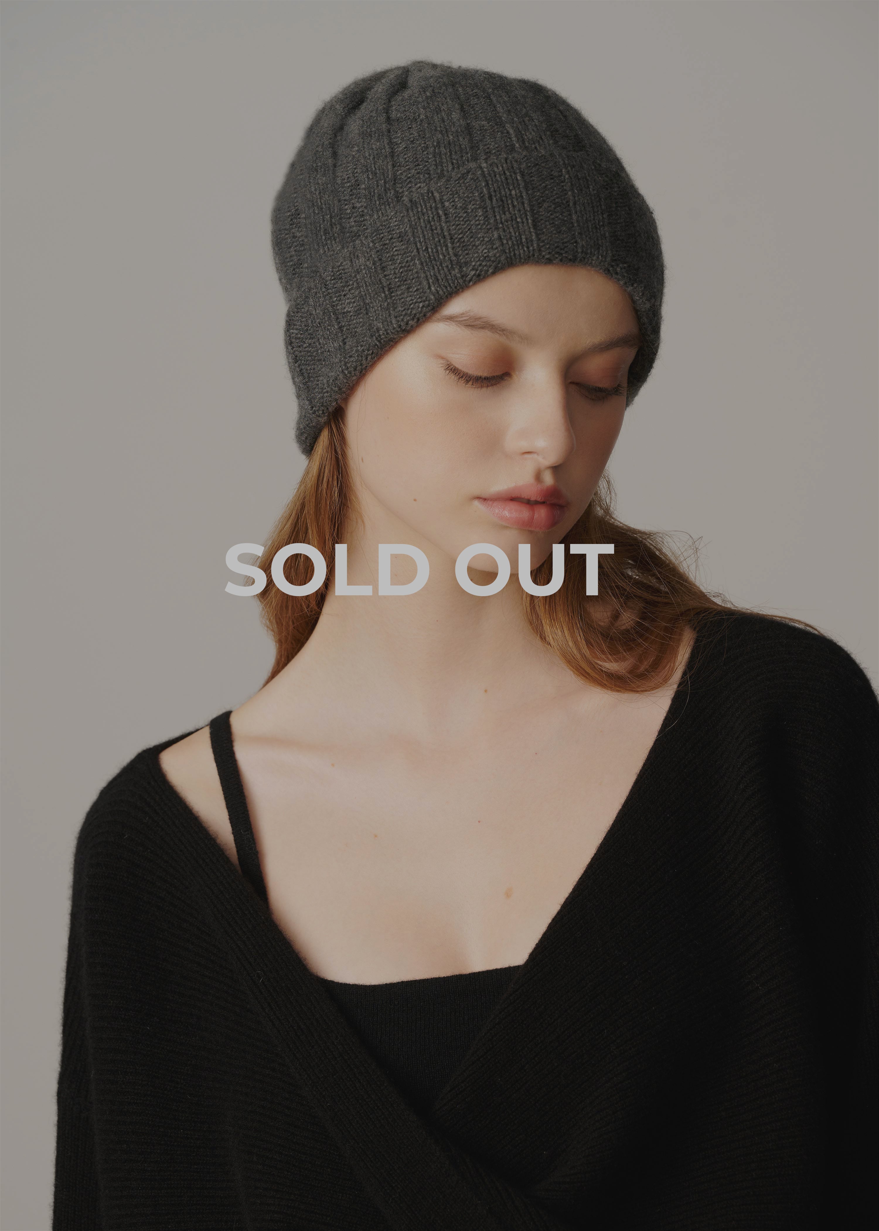 Cashmere Rib Knit Beanie - Charcoal