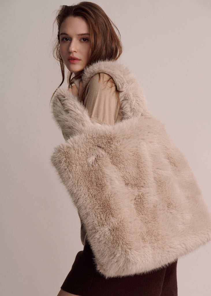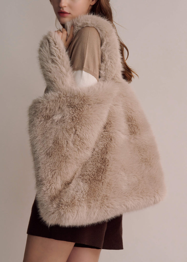 Vegan Fur Tote Bag - Wheat