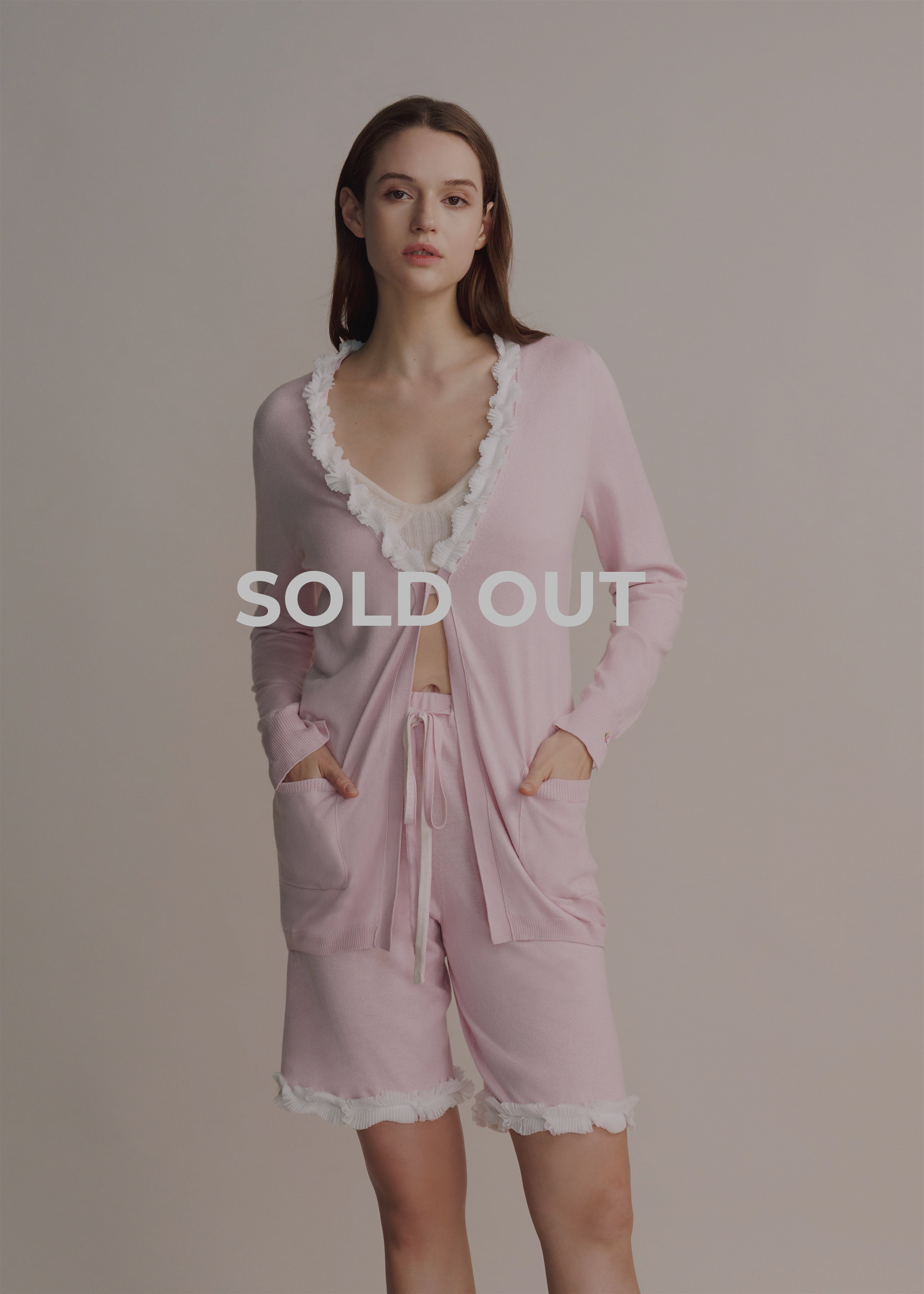 Lily Ruffled Trim Super-Soft Silky Cashmere Cardigan - Baby Pink