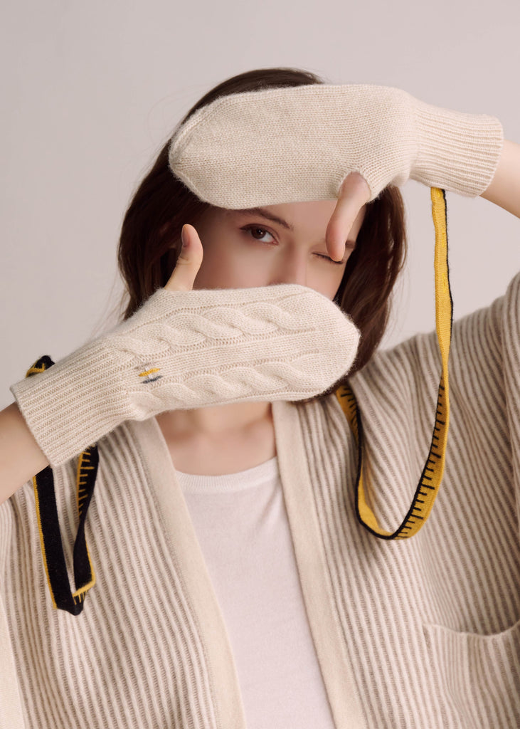 Cable Knit Cashmere Gloves with Adjustable Strap - Wheat