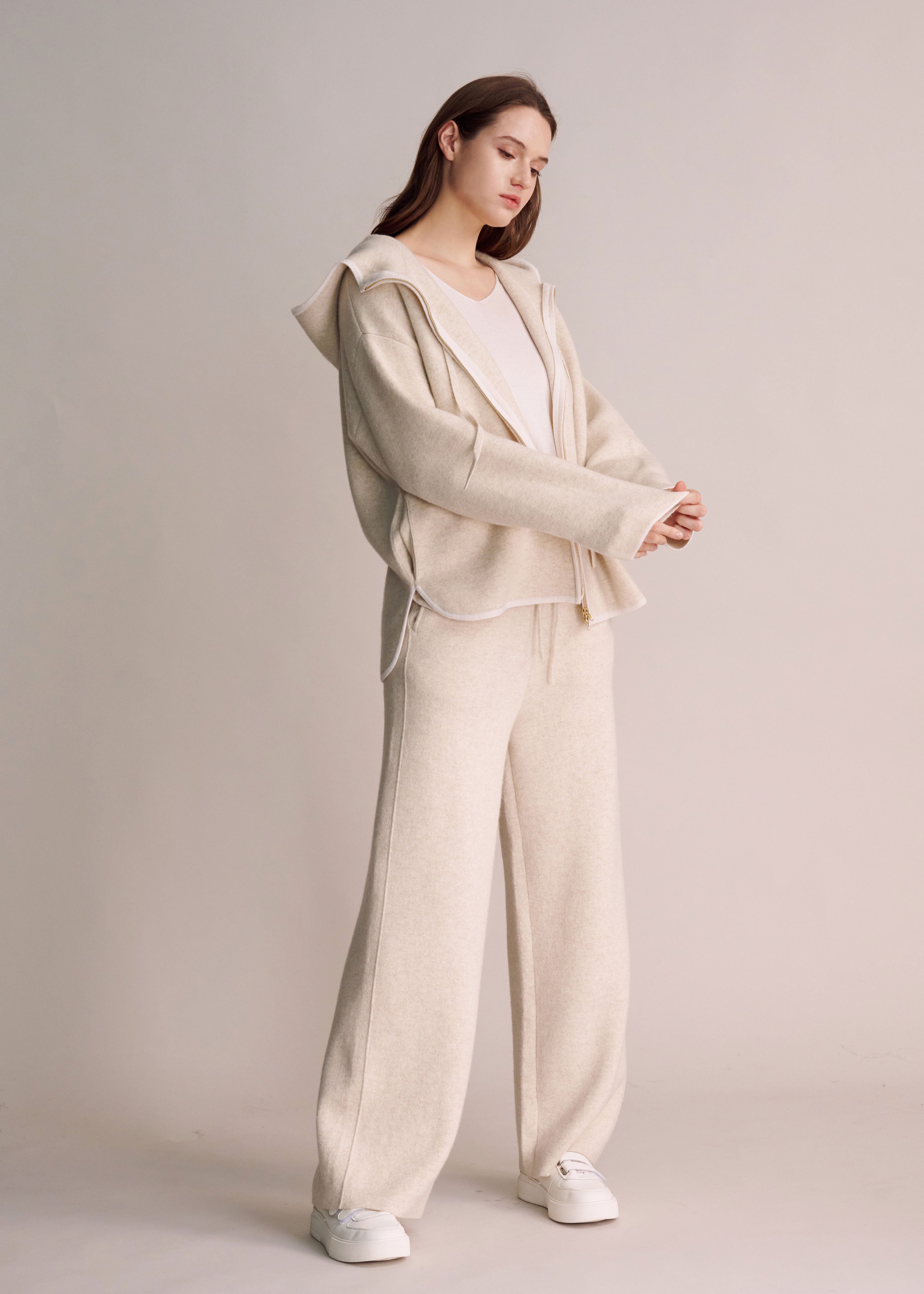 The Cashmere Straight Pants are cut in a streamlined silhouette, designed to flatter with ease while offering the unparalleled softness of cashmere. Pair them with the Cashmere Hoodie Cardigan for a complete ConneXions set, or style them separately with your everyday essentials. Whether worn alone or as part of the ensemble, these pants embody the ConneXions spirit — connecting effortless comfort with quiet sophistication.