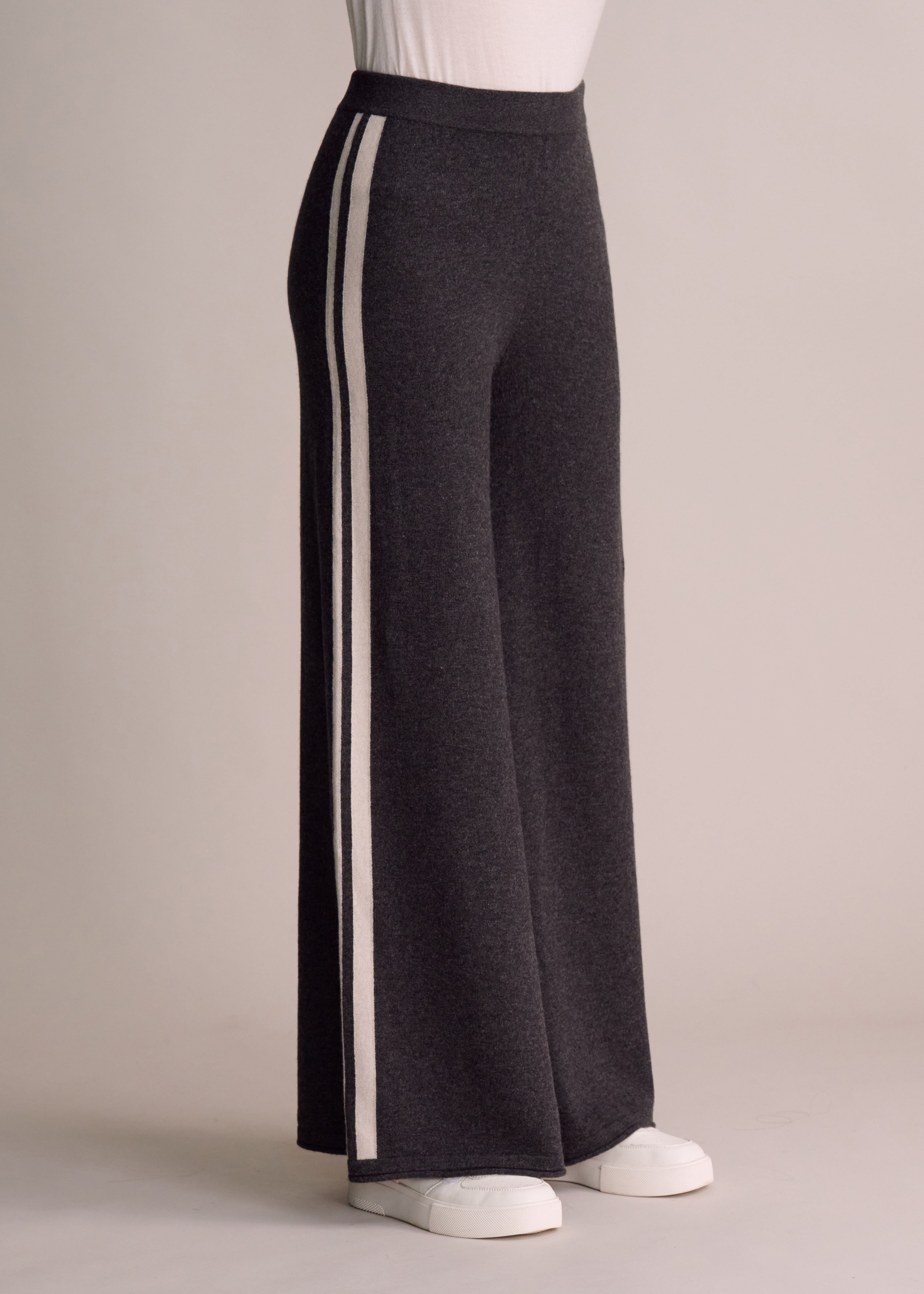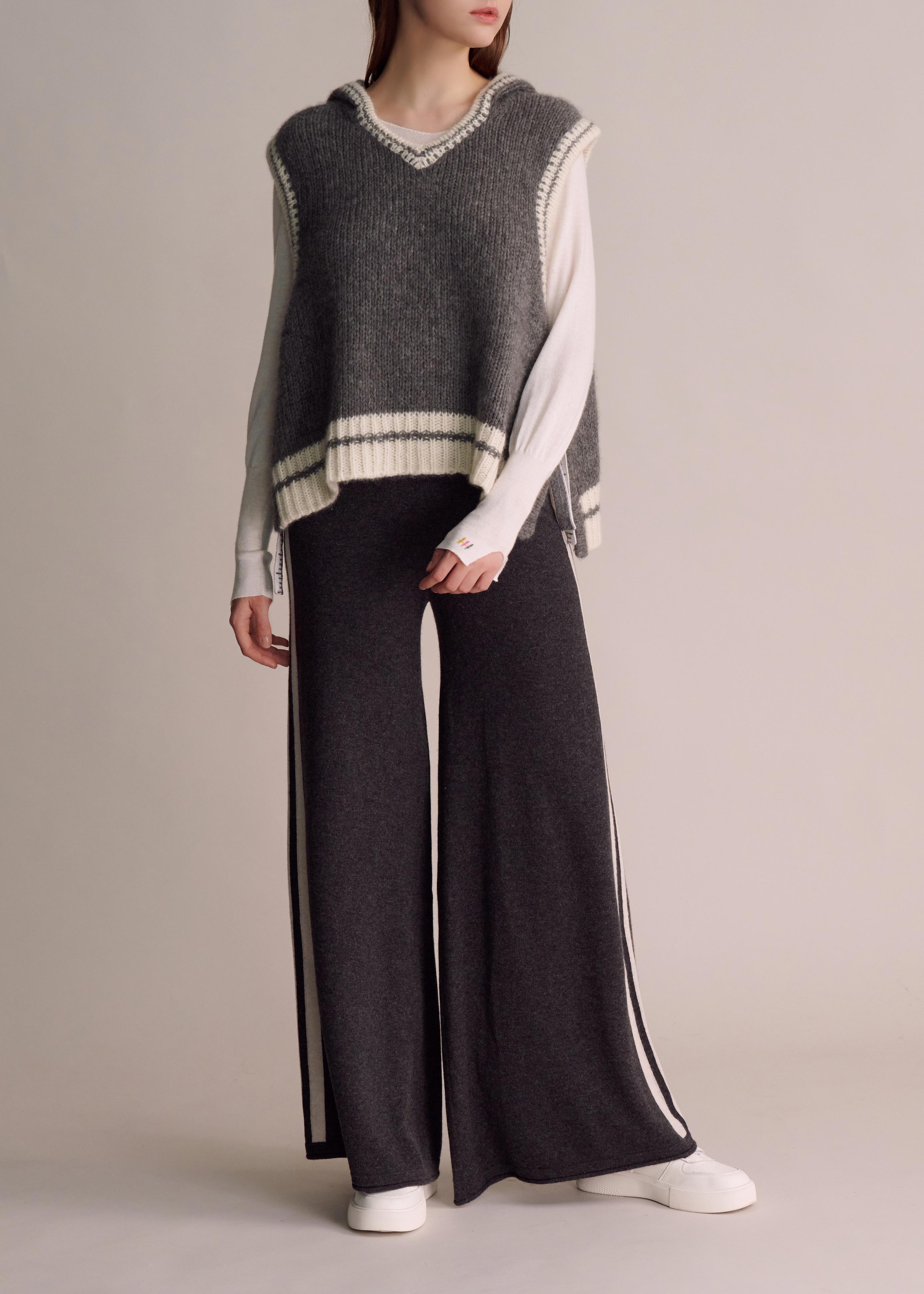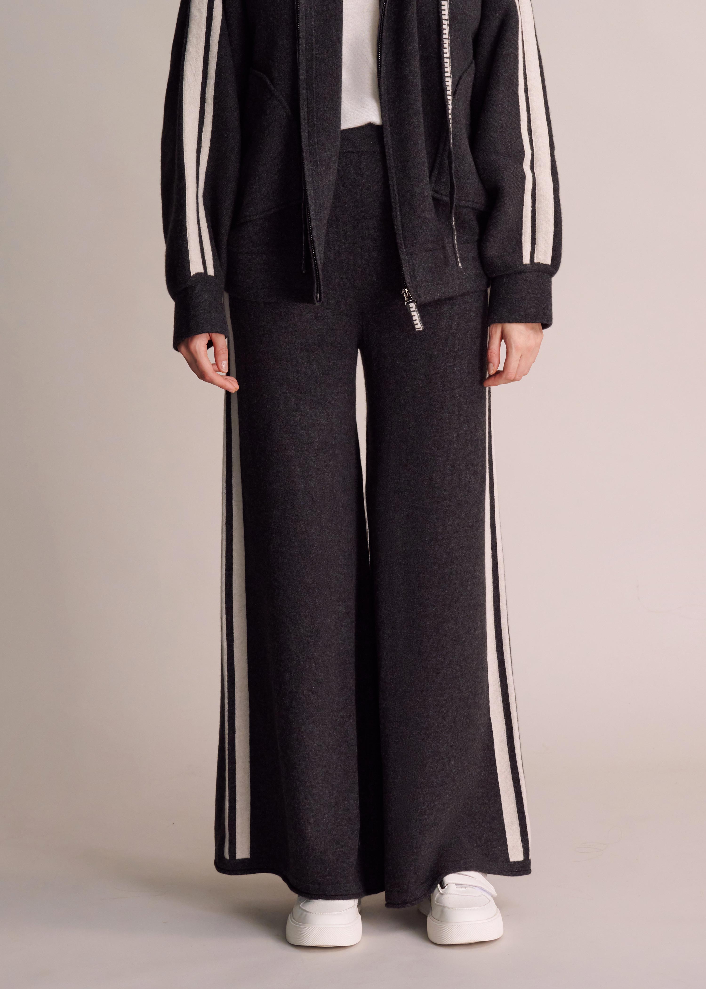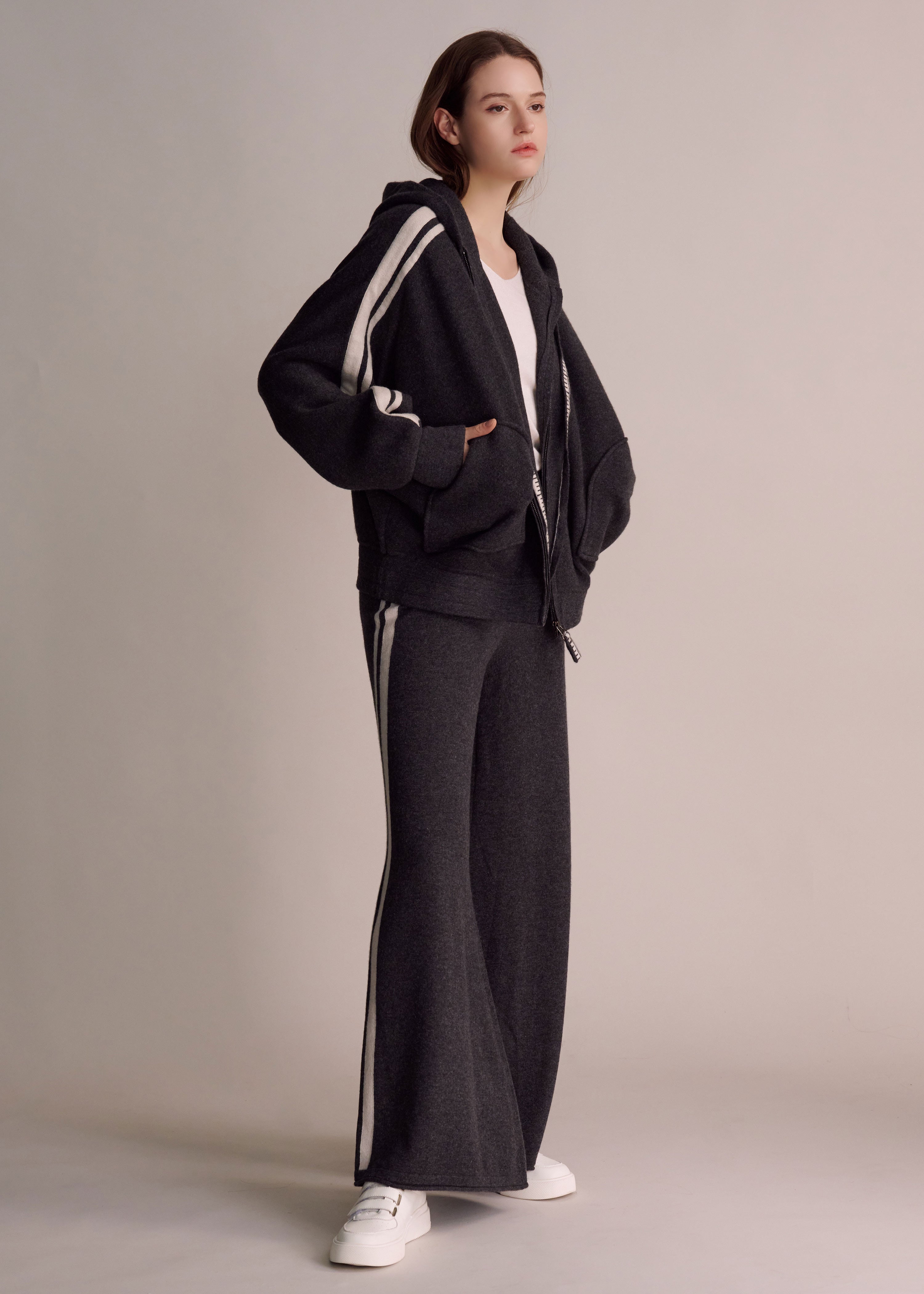 - These pants blend structure and fluidity, reflecting the "ConneXion" theme. With a subtle flare and rolled hems, they move effortlessly with each step. The bold side stripes symbolize connection and flow. Perfectly paired with the Rubie Hoodie Jacket, they embody a harmonious balance of confidence, elegance, and ease.