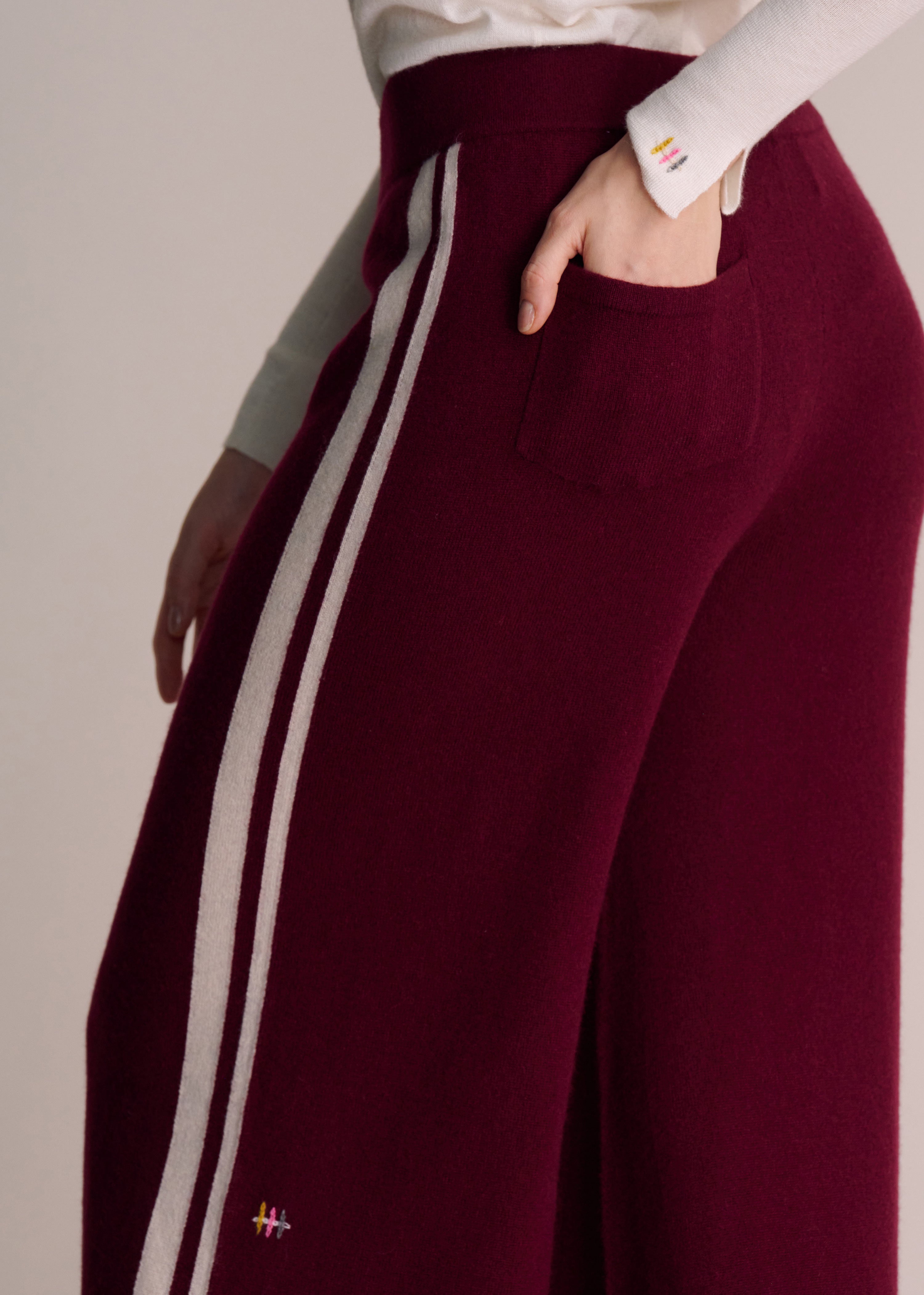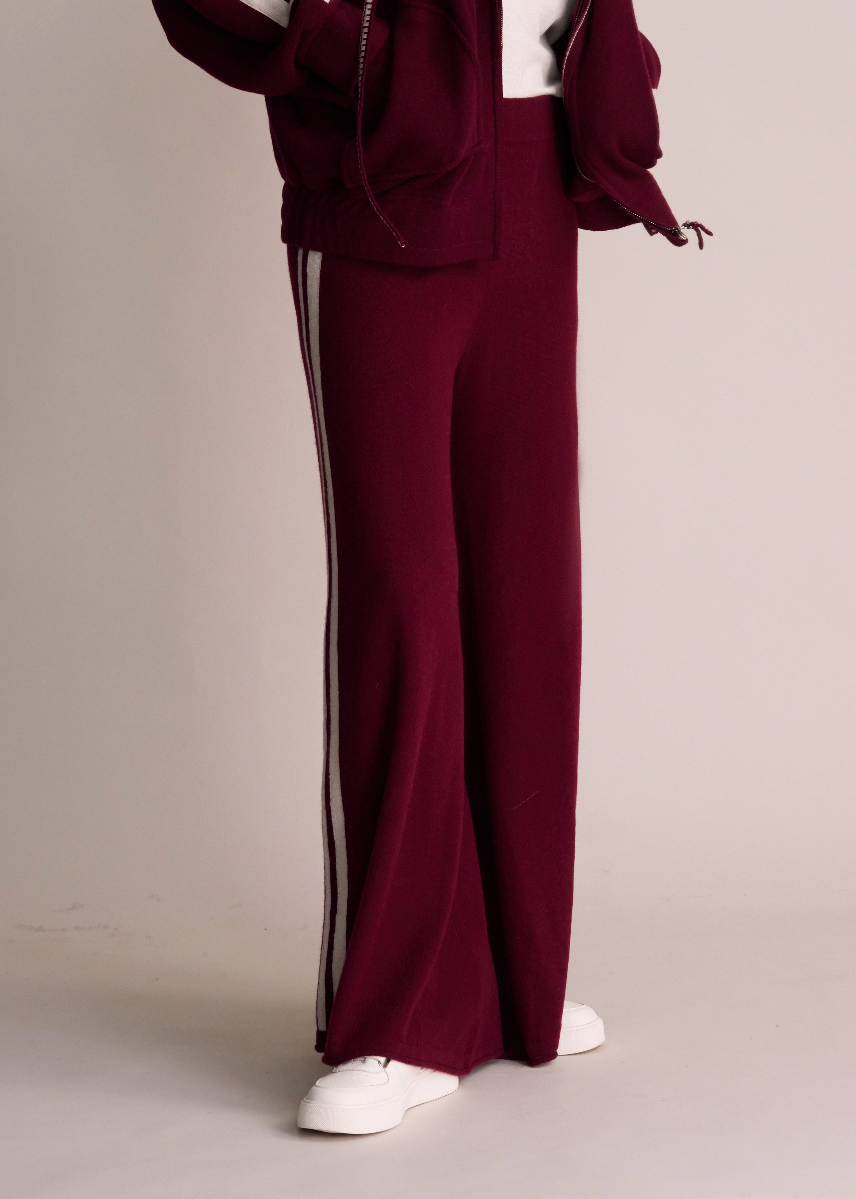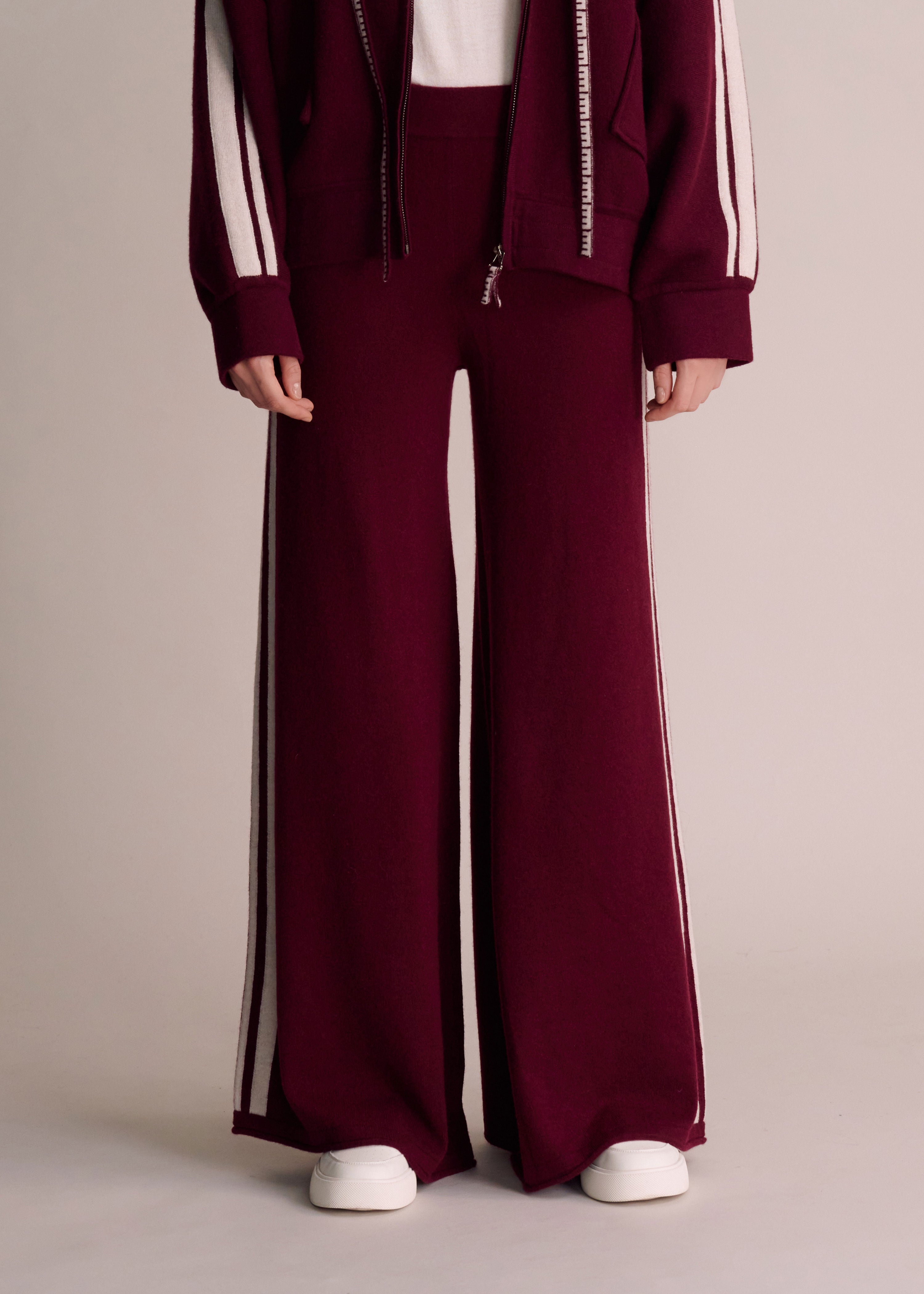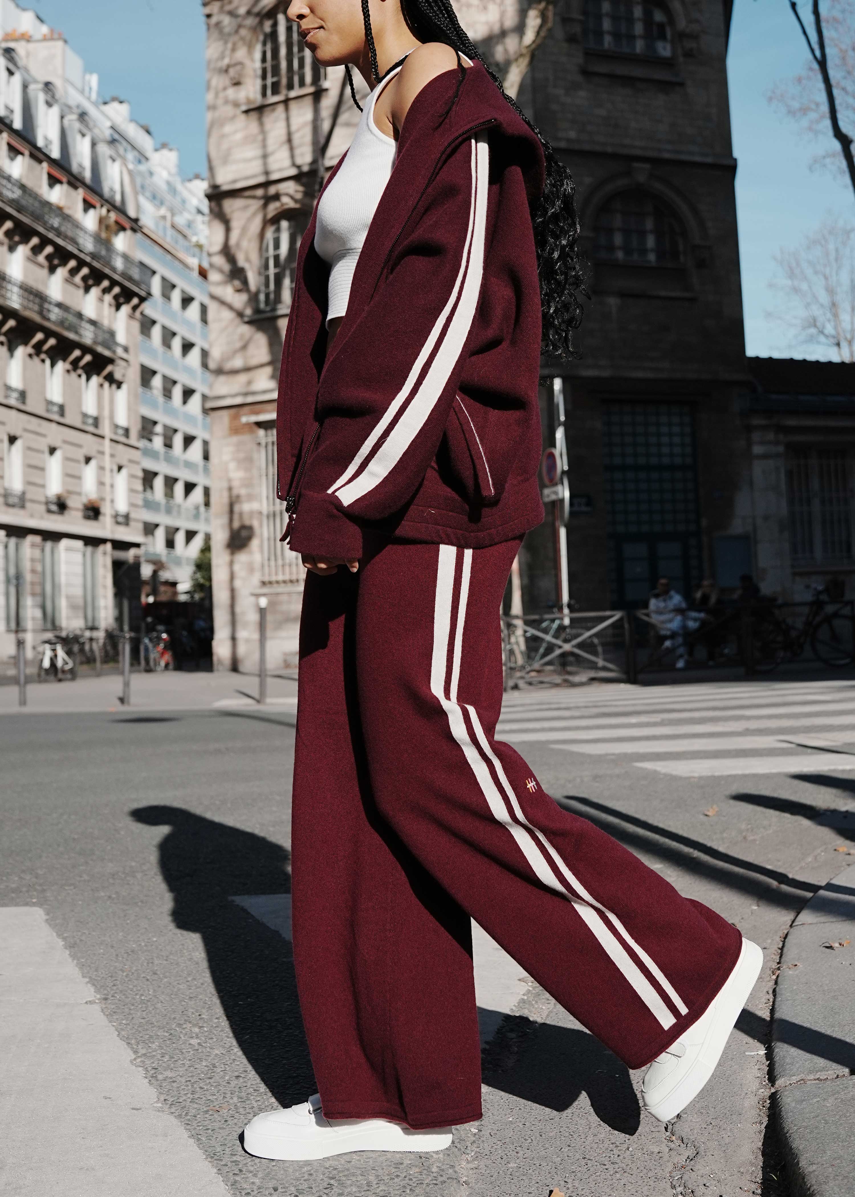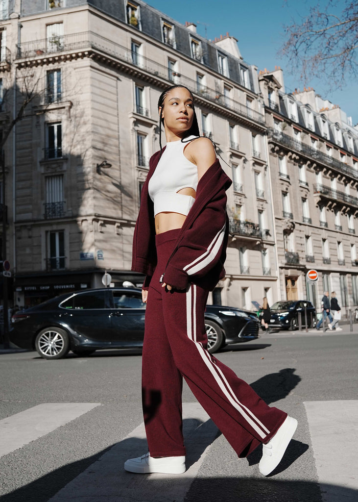 -These pants blend structure and fluidity, reflecting the "ConneXion" theme. With a subtle flare and rolled hems, they move effortlessly with each step. The bold side stripes symbolize connection and flow. Perfectly paired with the Rubie Hoodie Jacket, they embody a harmonious balance of confidence, elegance, and ease.