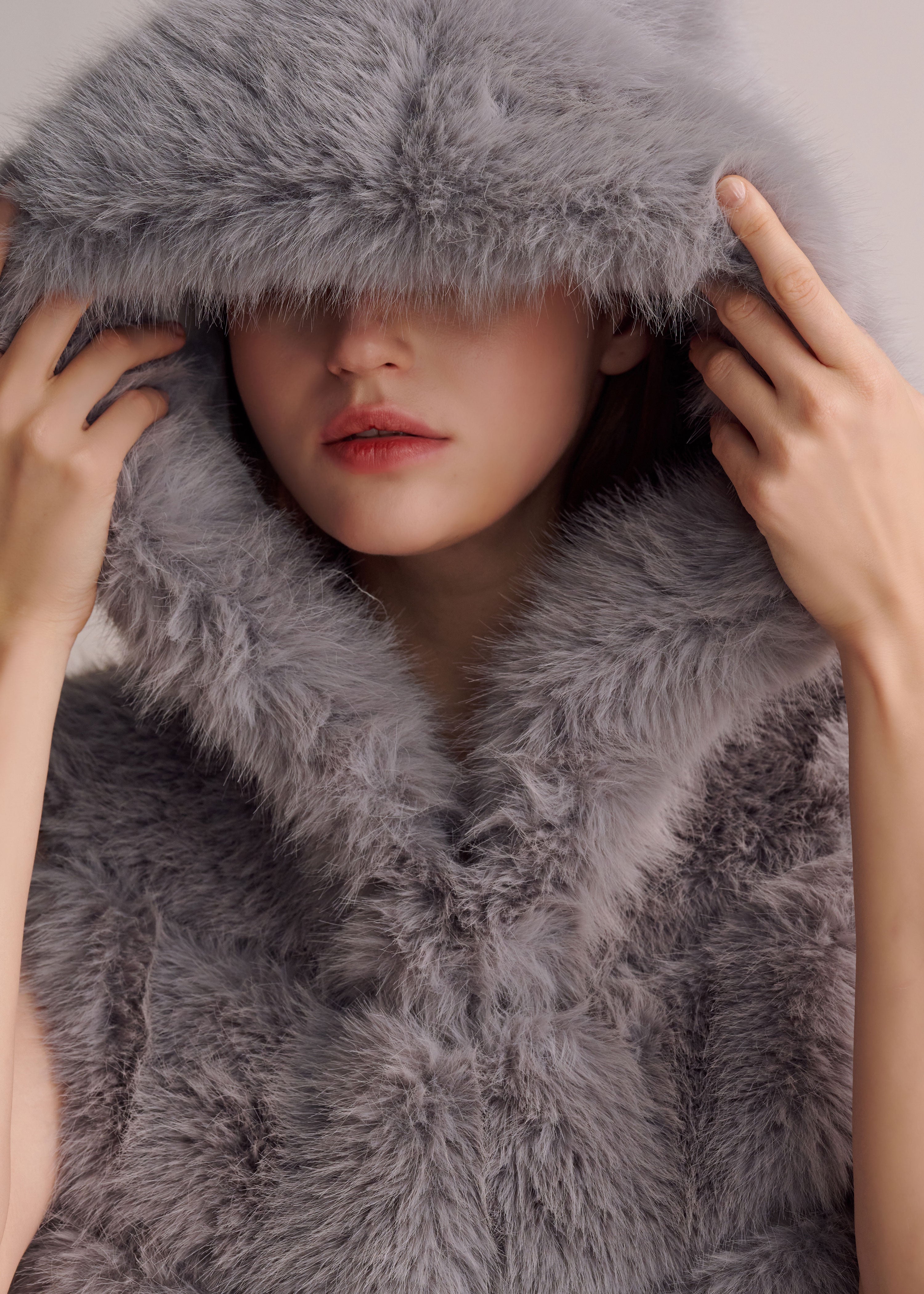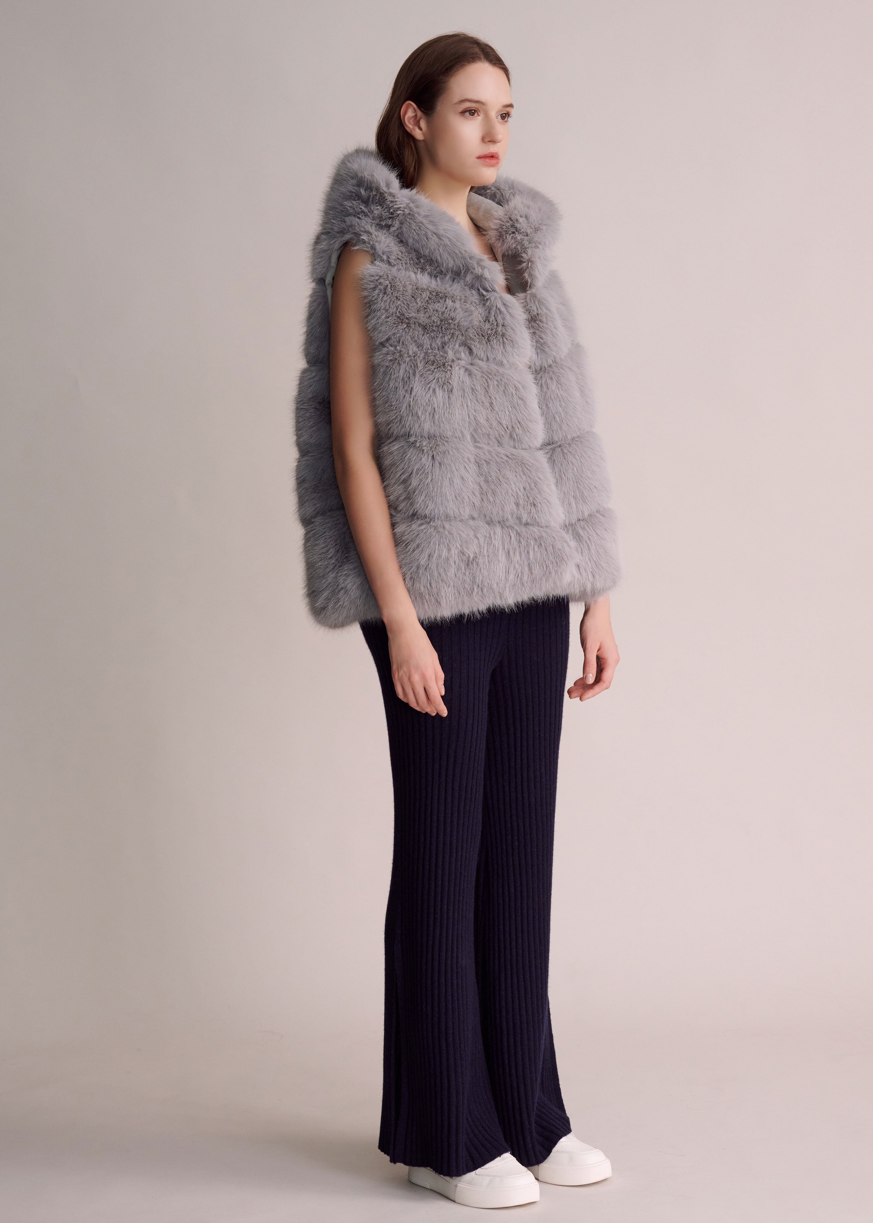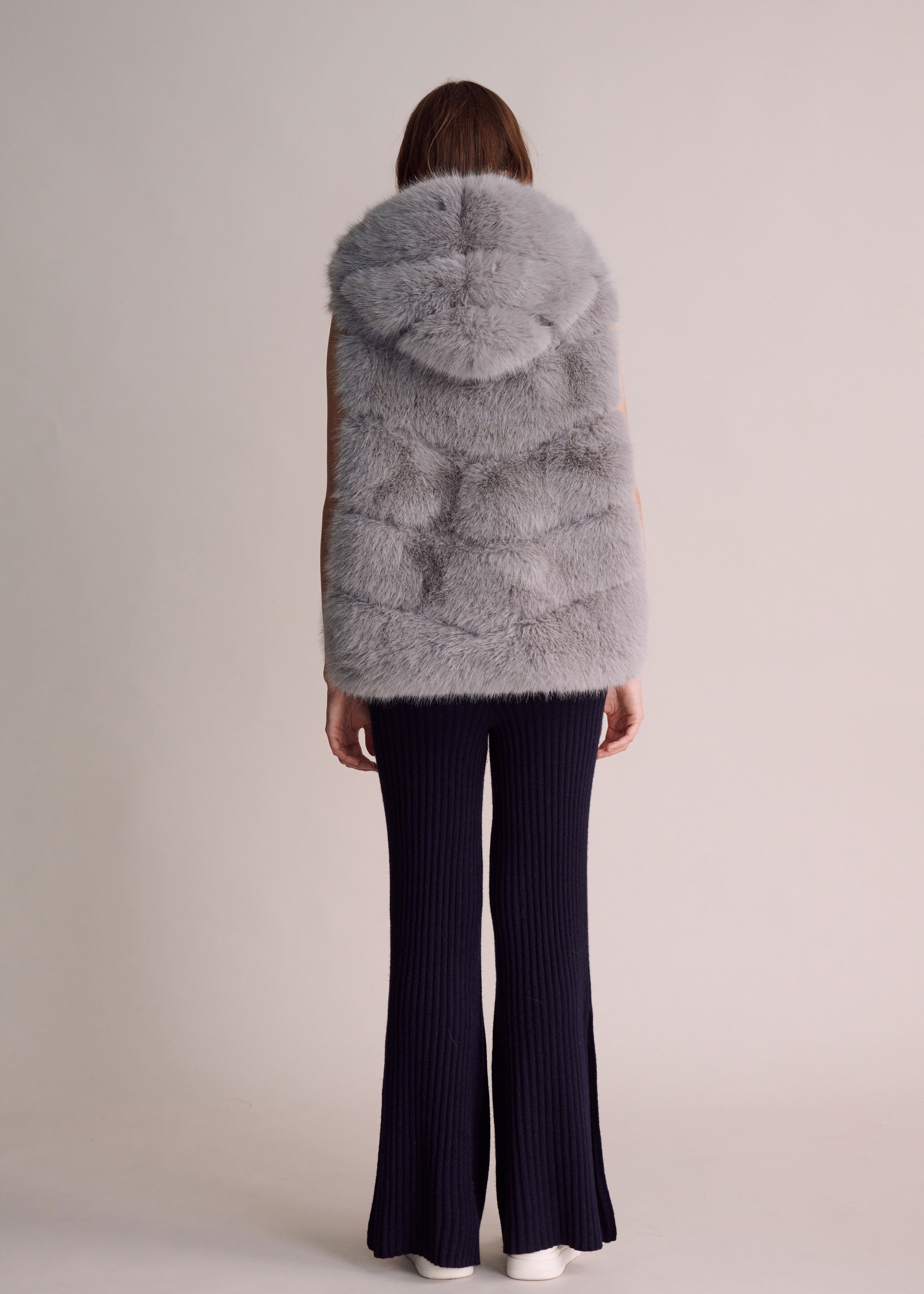 - Crafted with plush vegan fur and a soft brushed lining for warmth, this hooded vest blends comfort with modern edge. The open front is finished with sleek vegan leather trim and side pockets. Exceptionally warm, it’s the perfect piece to elevate your autumn style.