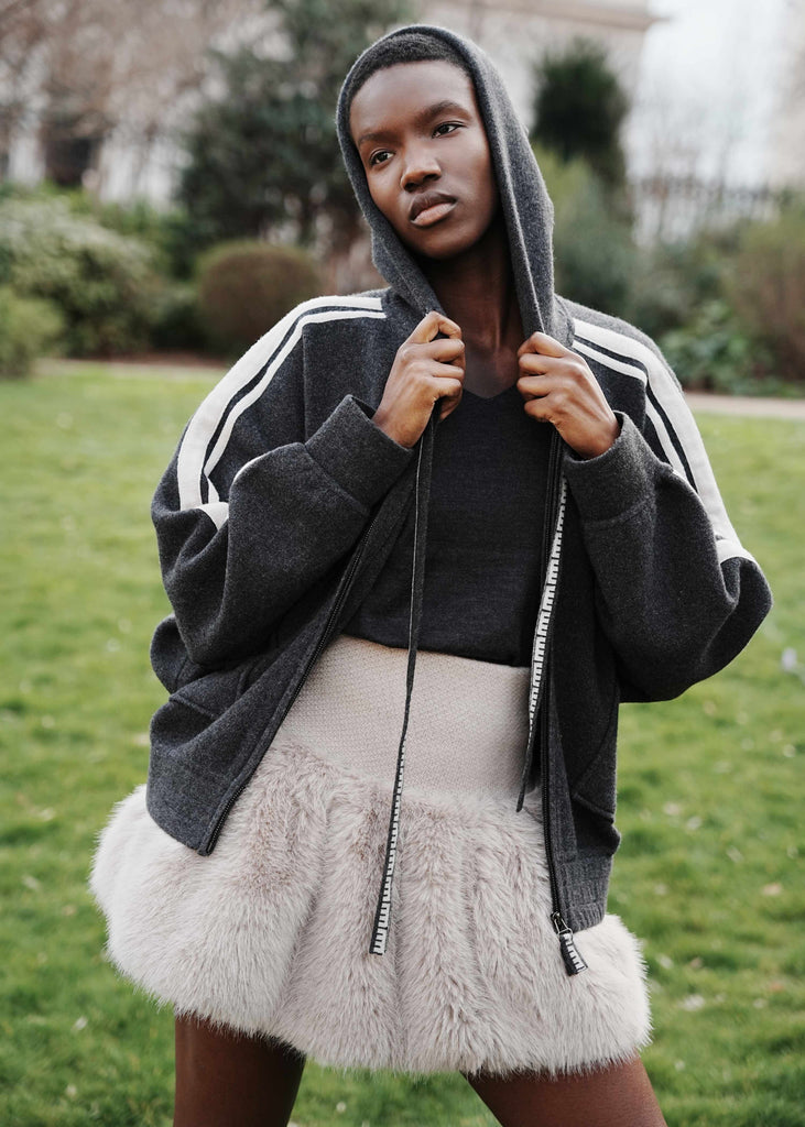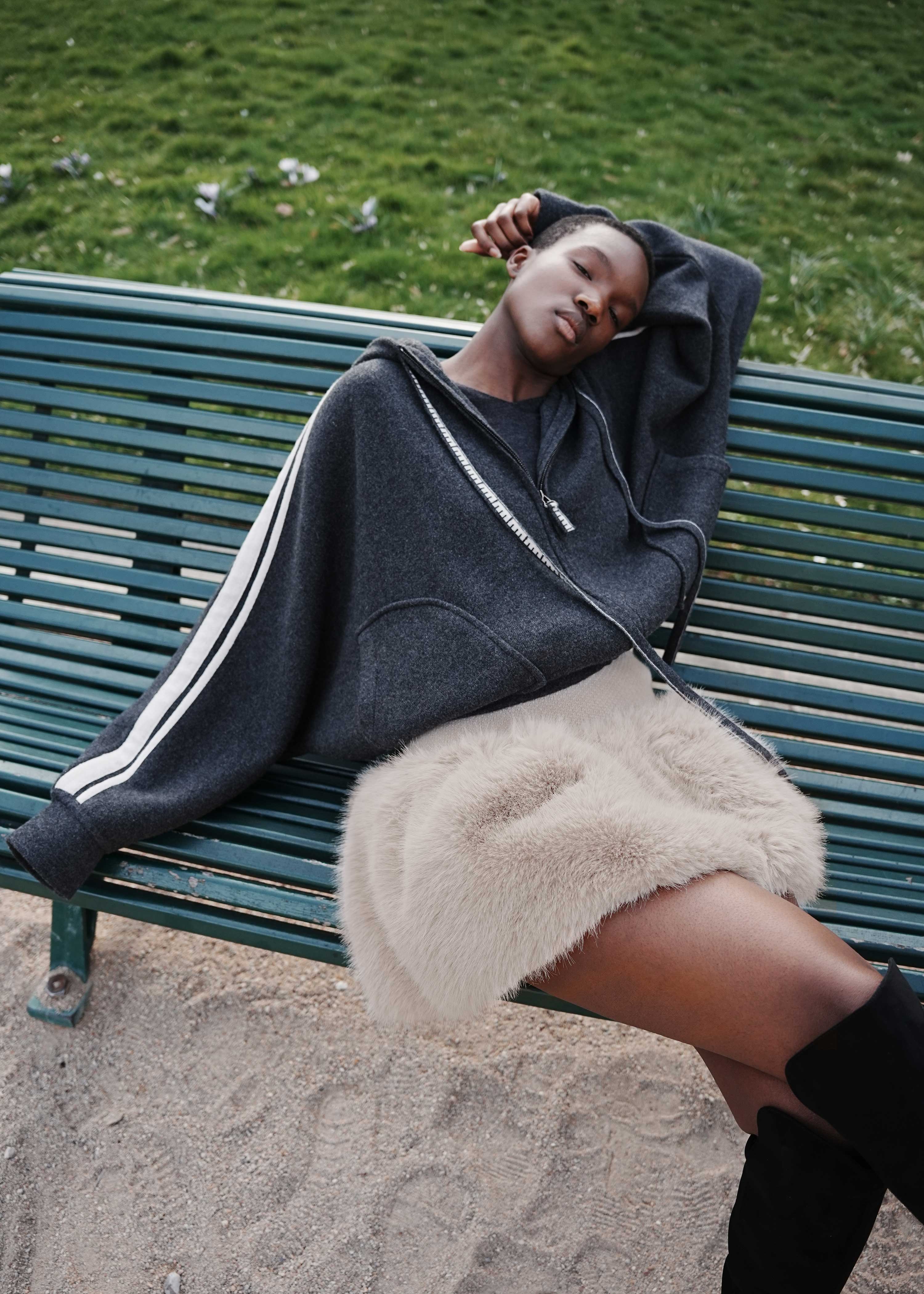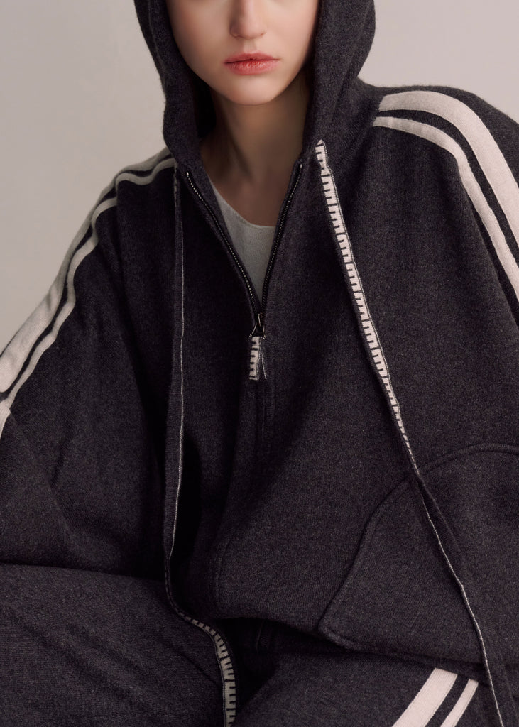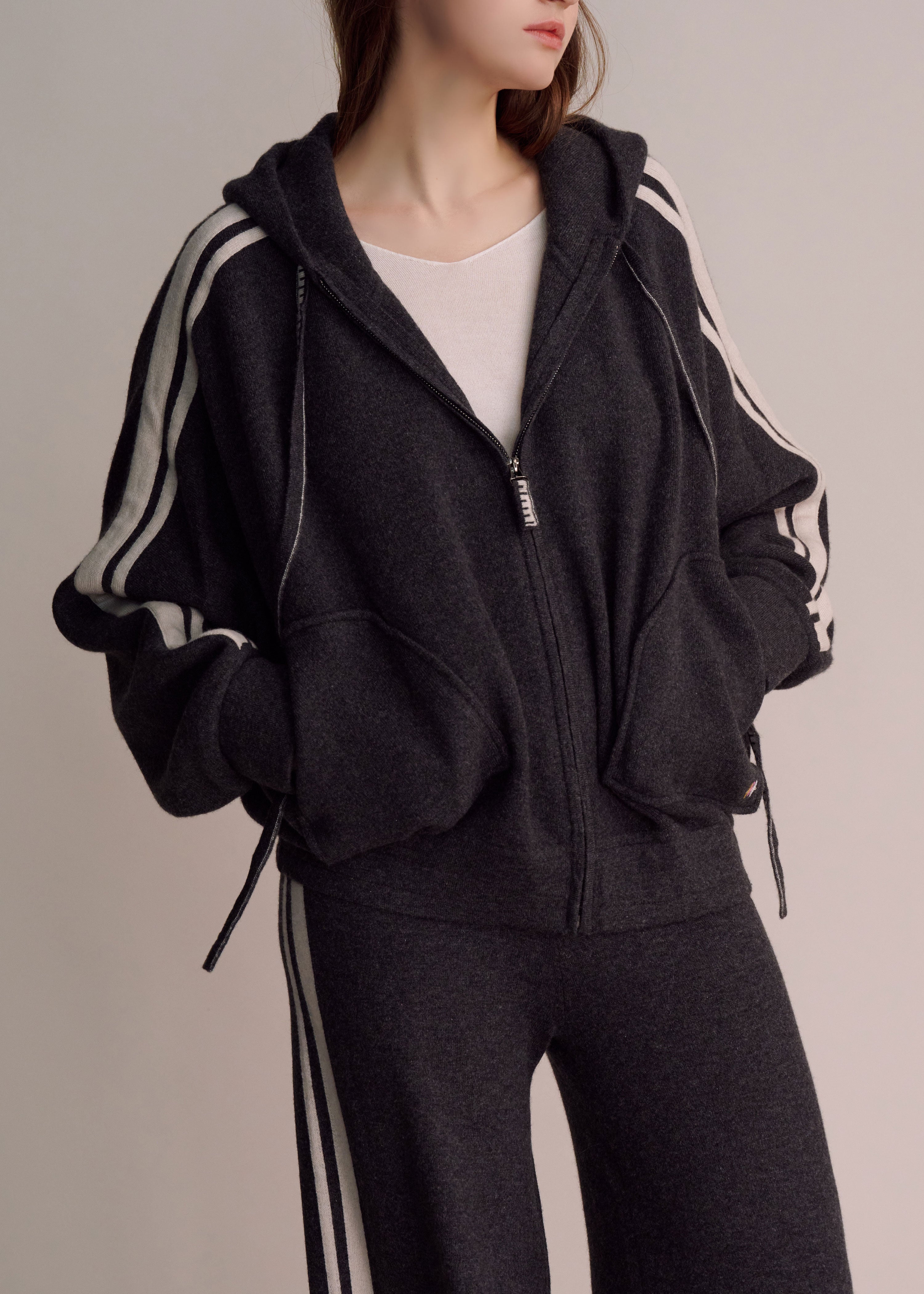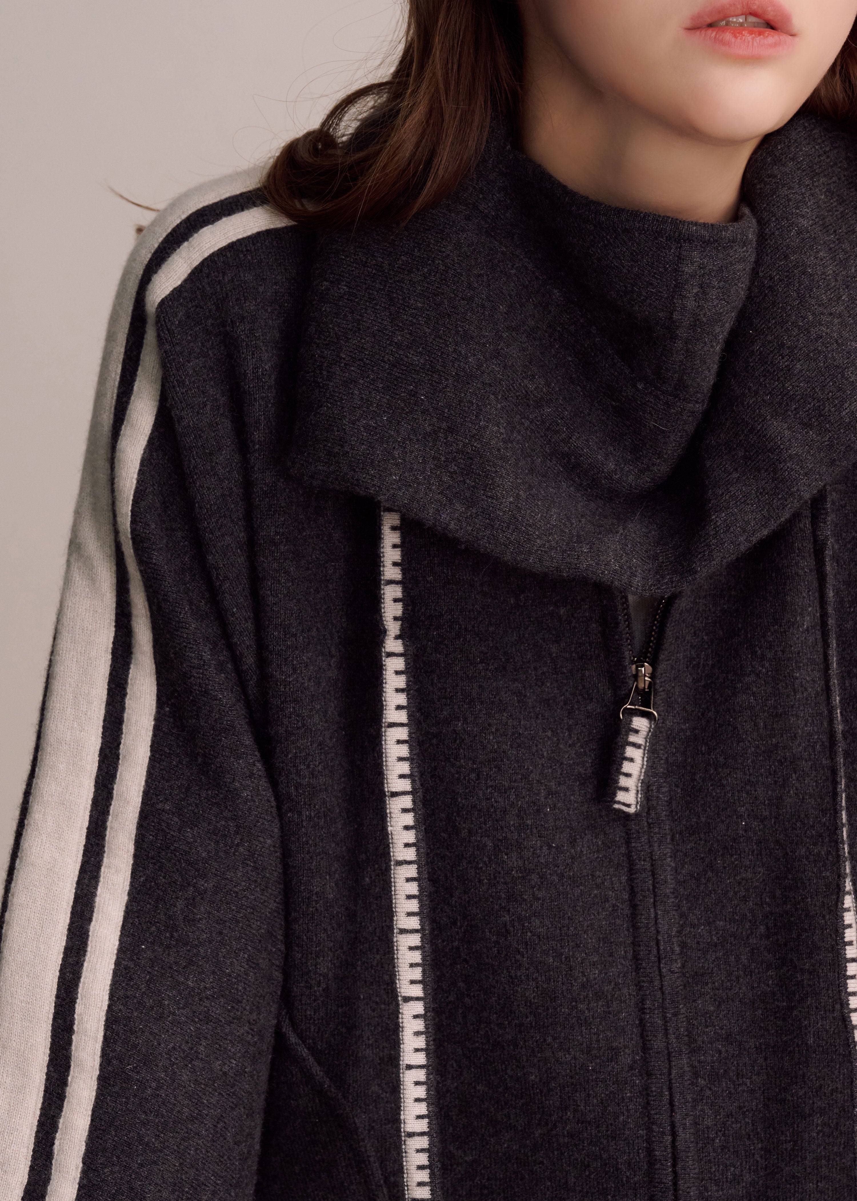- Blending innovation with luxury, the Rubie jacket is designed for ultimate versatility. Made from ultra-soft cashmere, it features a sleek, structured silhouette with a cozy feel. The unique convertible hood has discreet openings, allowing it to be pulled down and transformed into a snug neck warmer for added functionality. In an elegant charcoal hue, this piece embodies the ConneXions theme—where adaptability and sophistication come together seamlessly.
