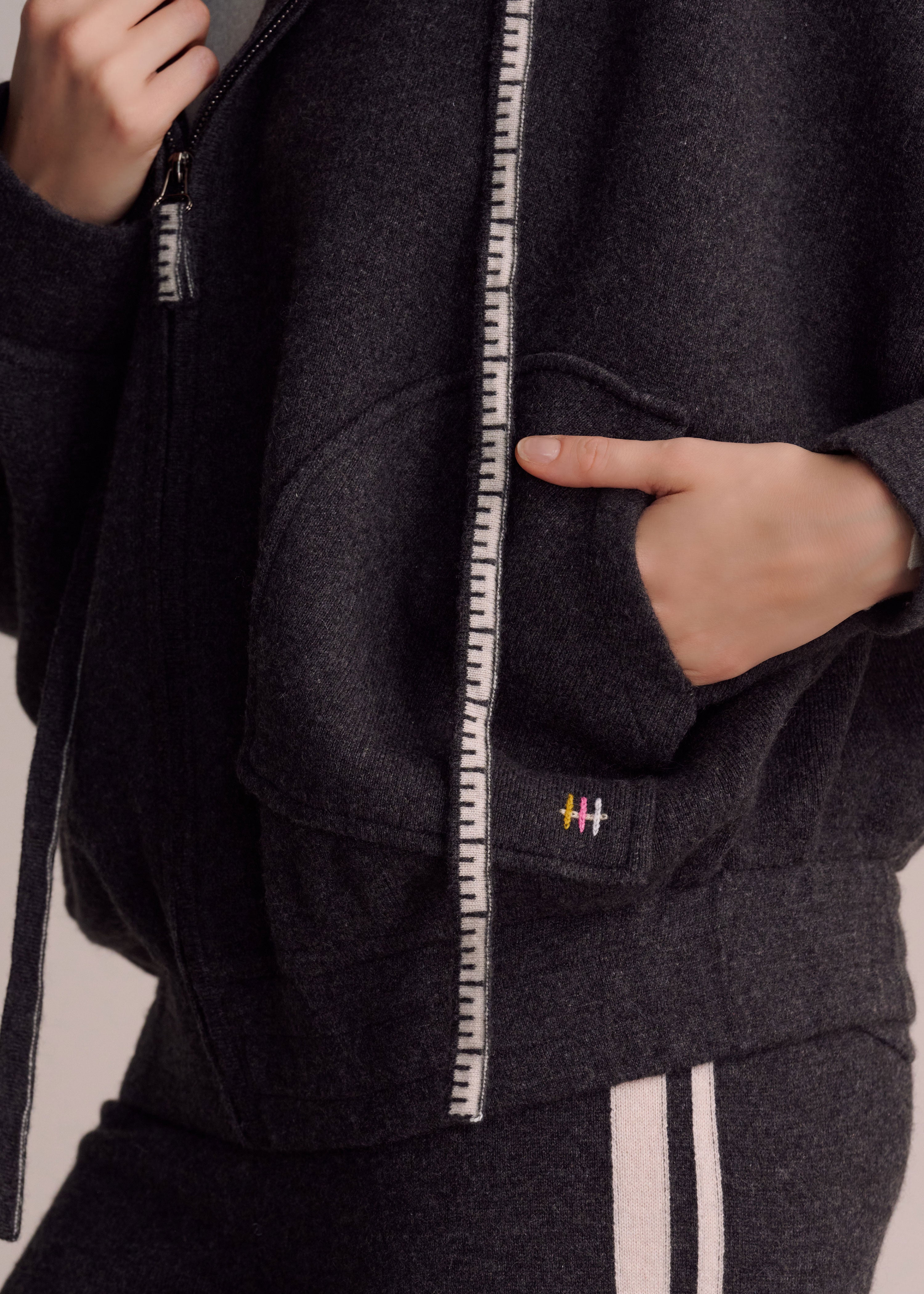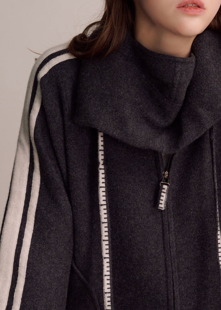 Rubie Cashmere Jacket with Convertible Scarf Hood - Charcoal