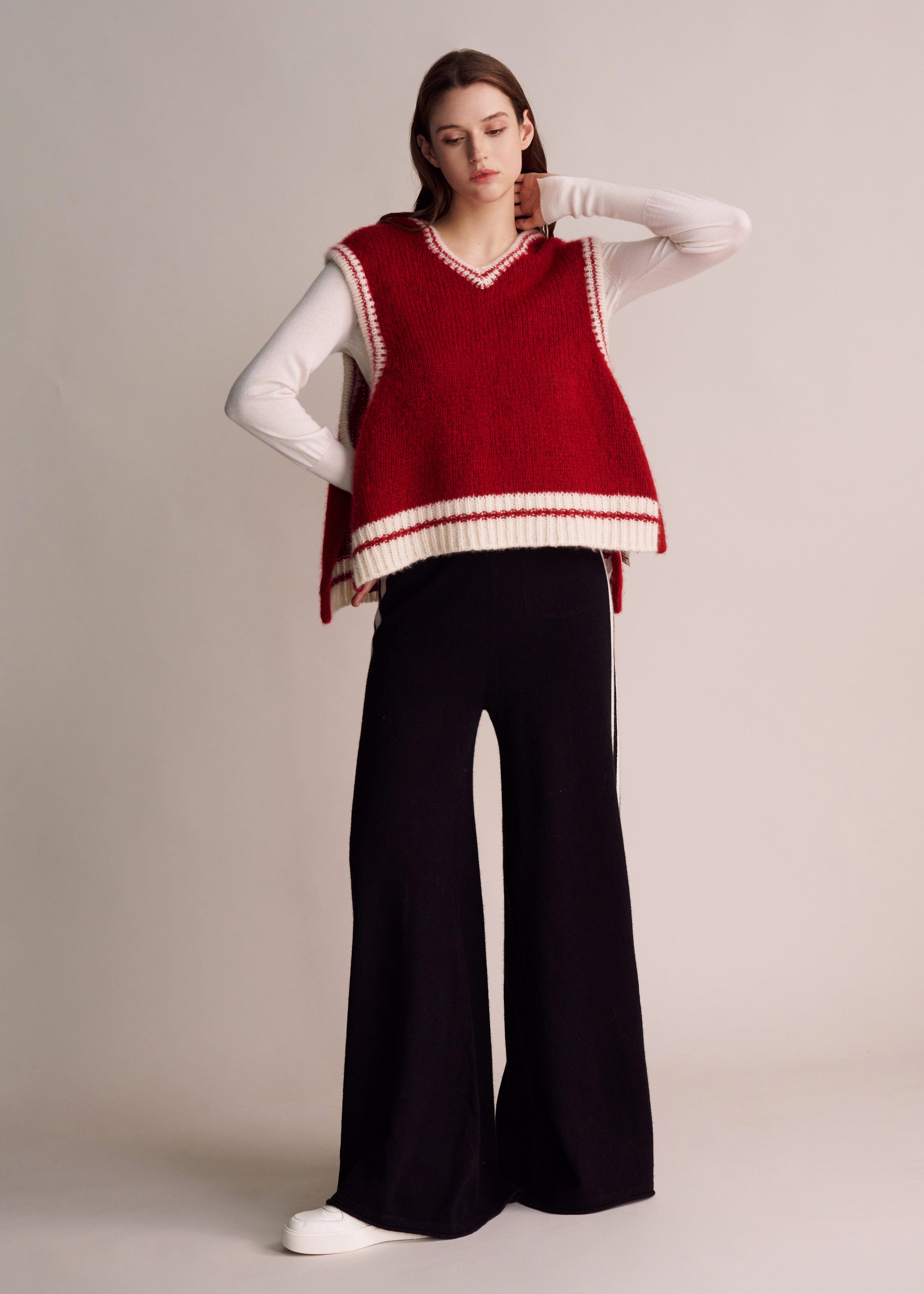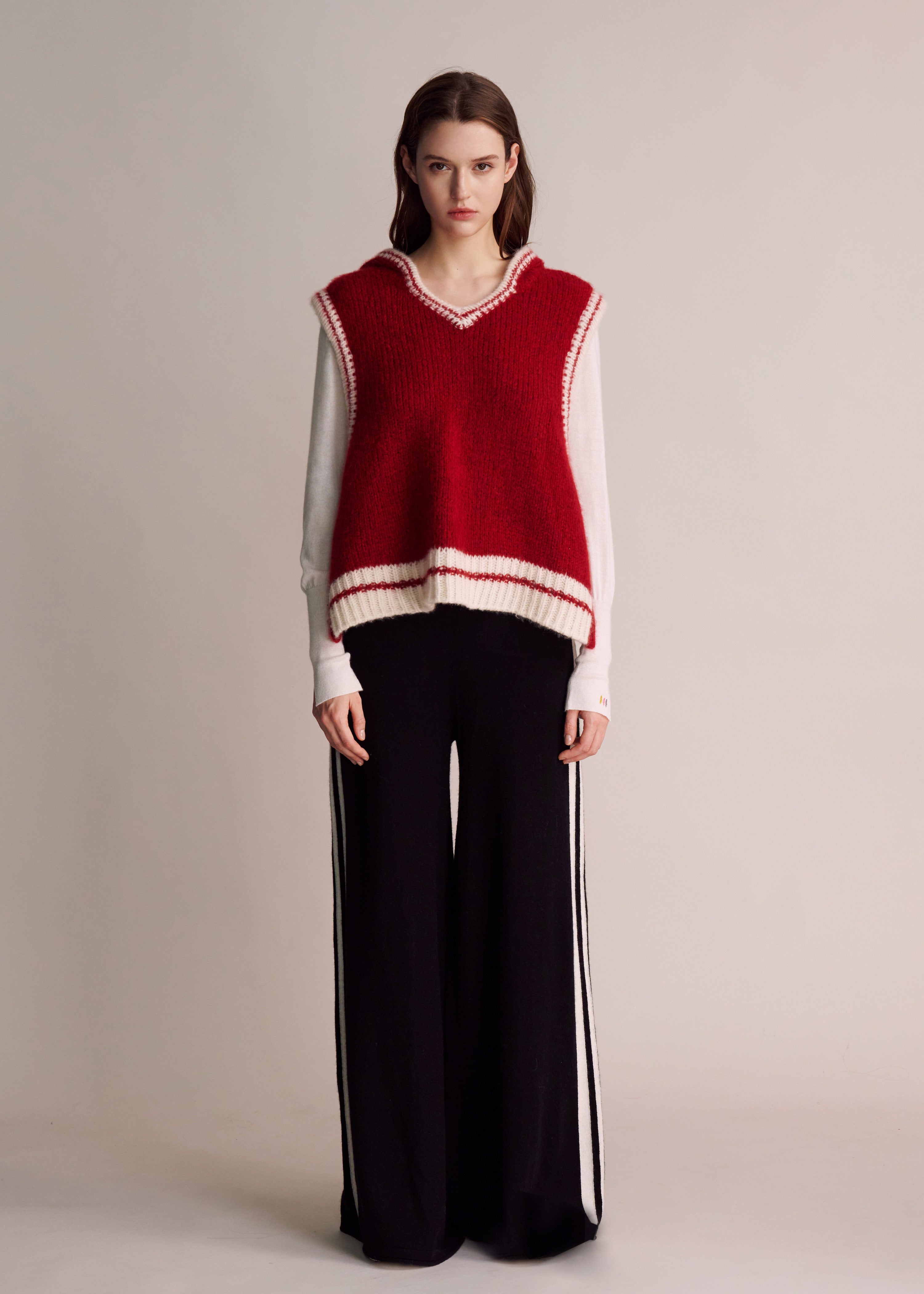 Natalia Cashmere Vest with Convertible Scarf Hoodie - Red