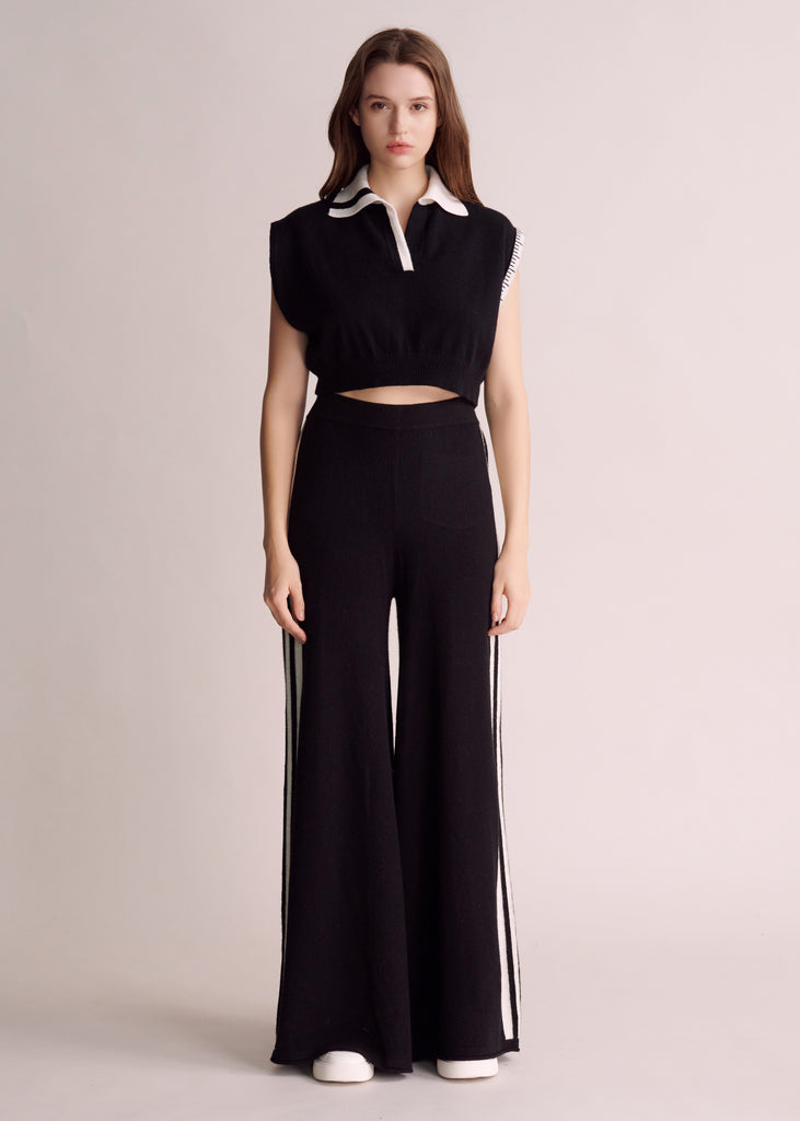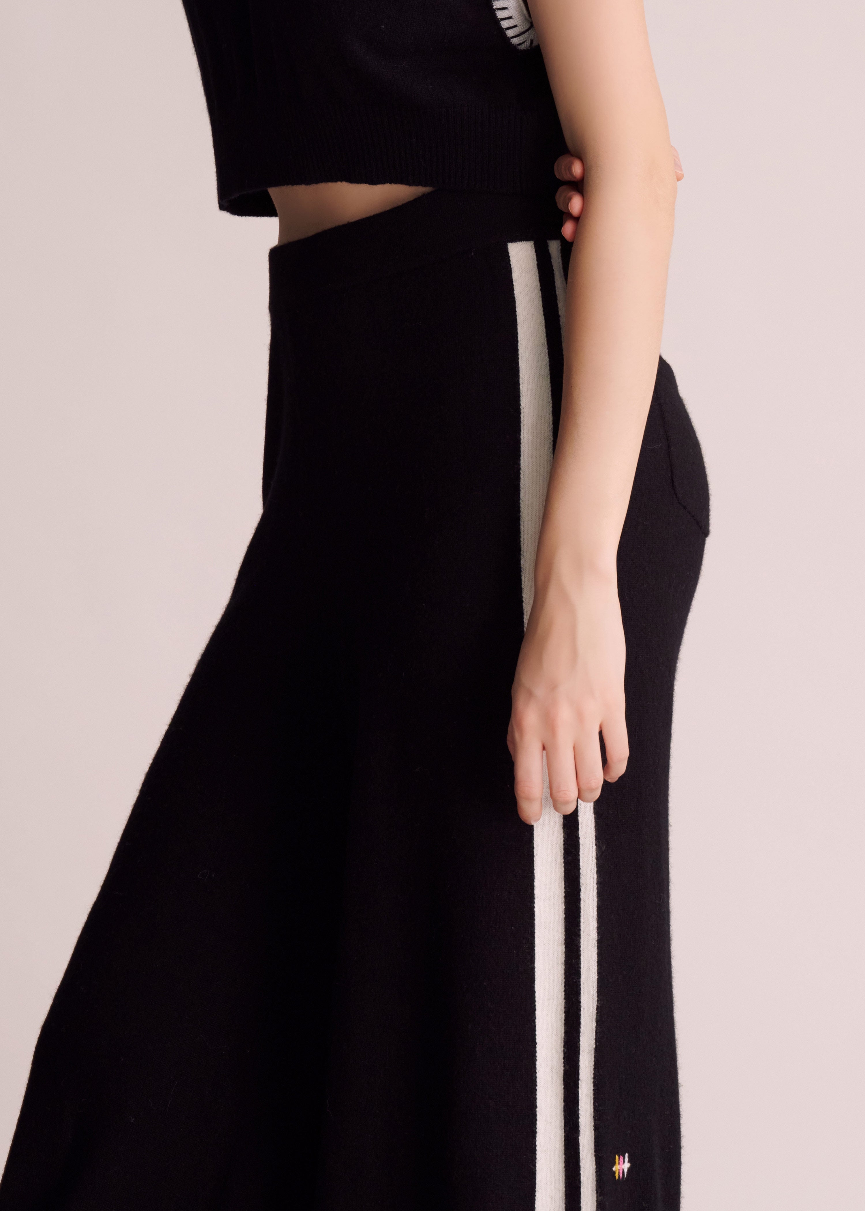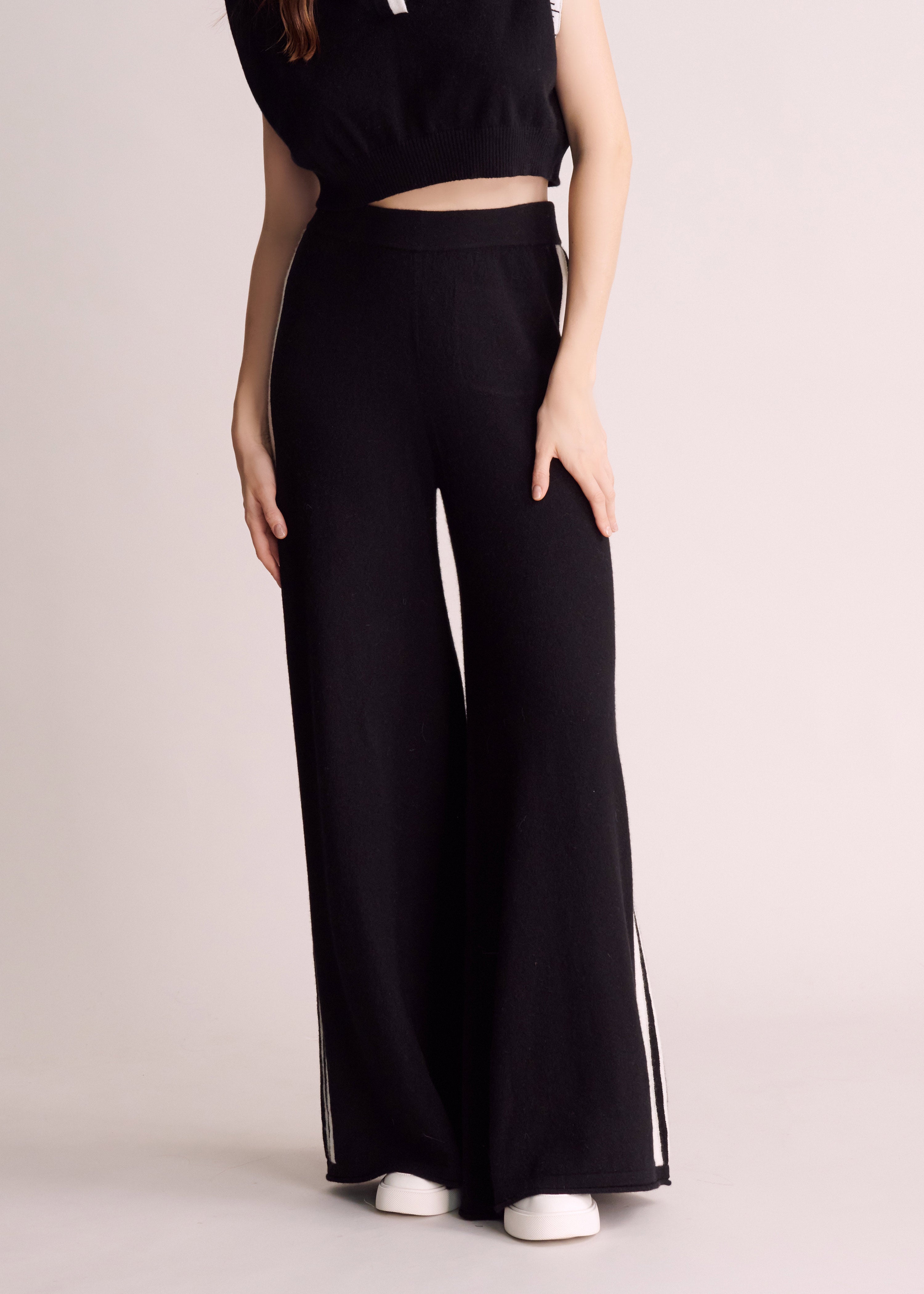 - These pants blend structure and fluidity, reflecting the "ConneXion" theme. With a subtle flare and rolled hems, they move effortlessly with each step. The bold side stripes symbolize connection and flow. Perfectly paired with the Rubie Hoodie Jacket, they embody a harmonious balance of confidence, elegance, and ease.