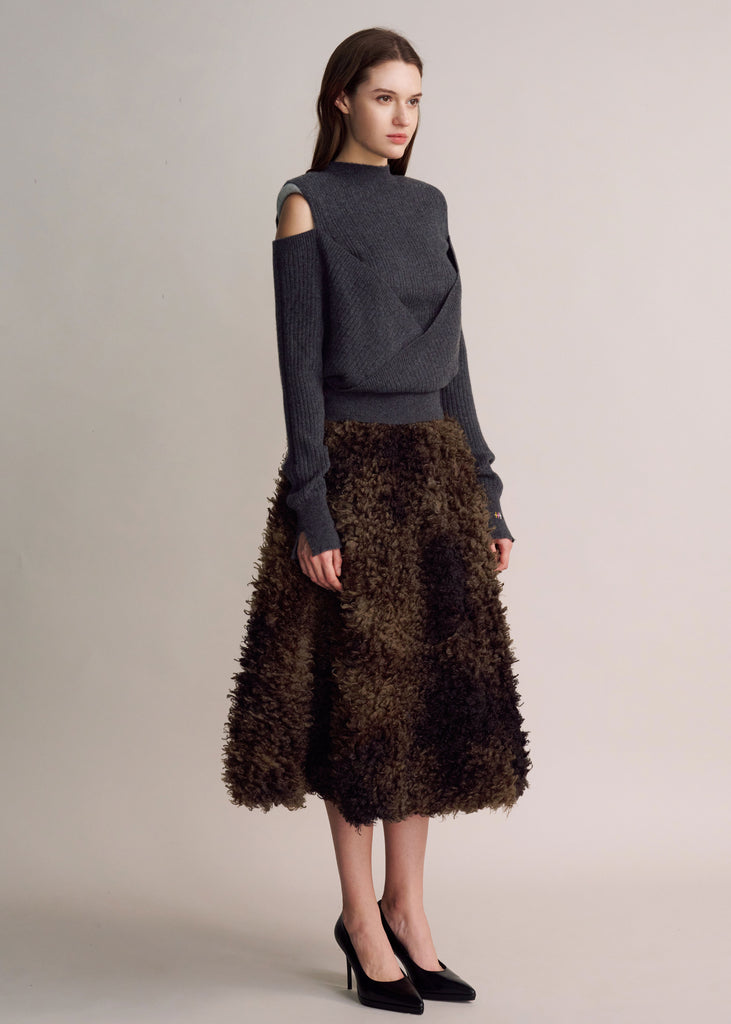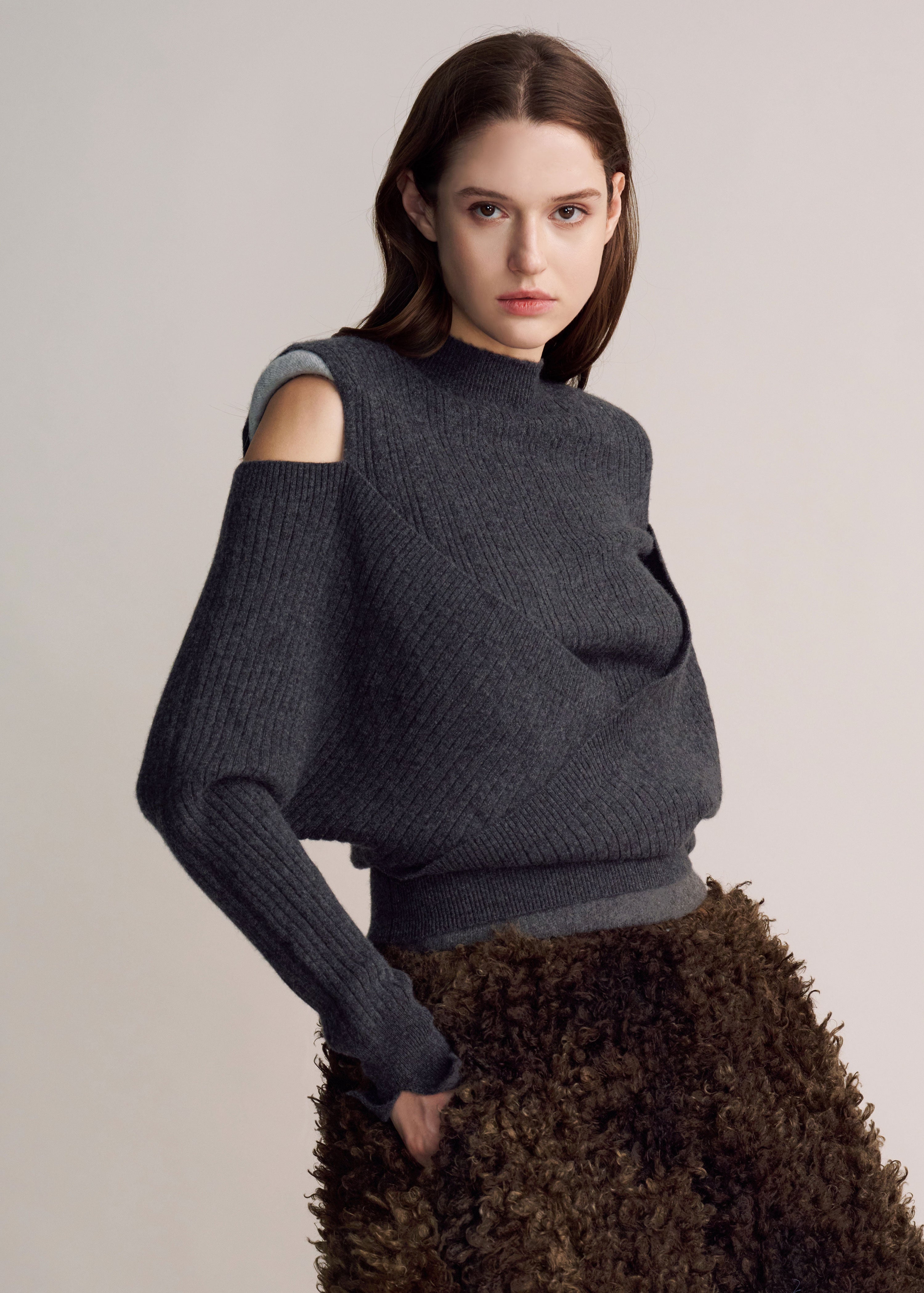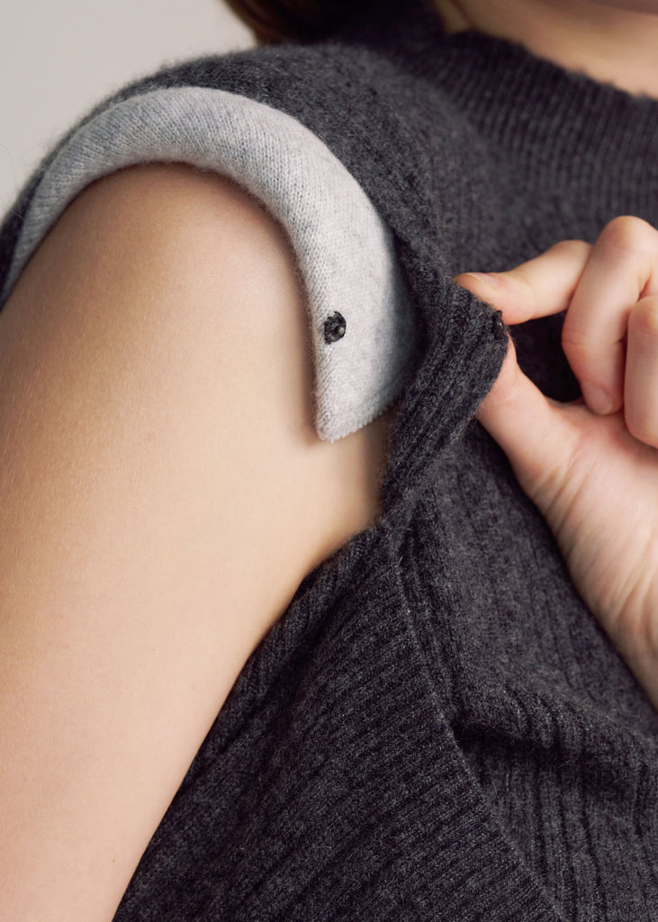 Amber Cashmere Layered Top with Detachable Pads - CHARCOAL