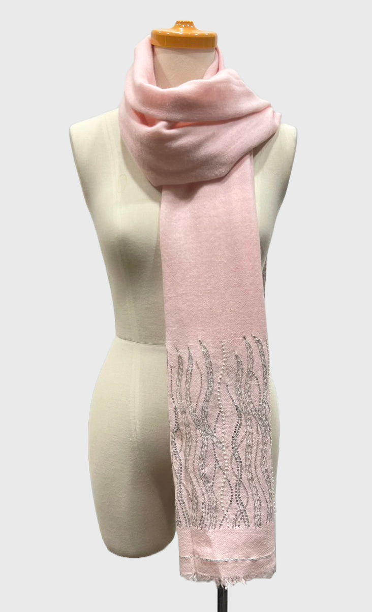 100% HANDMADE EMBROIDERY CASHMERE SCARF - Pink
