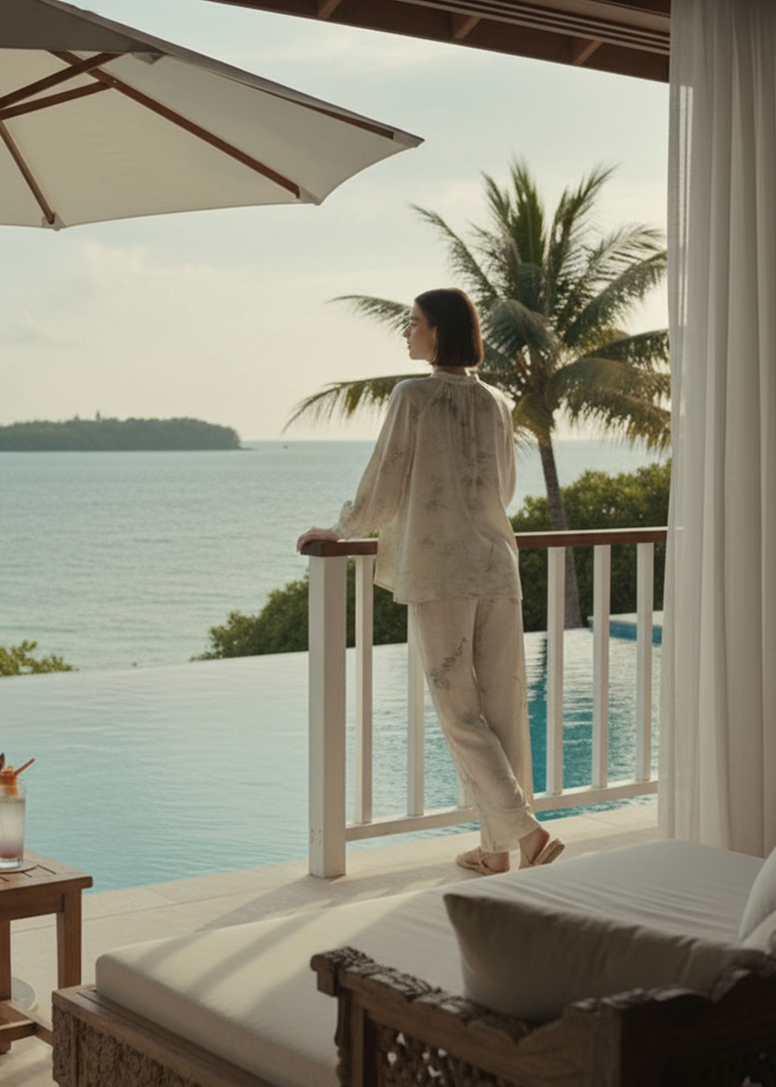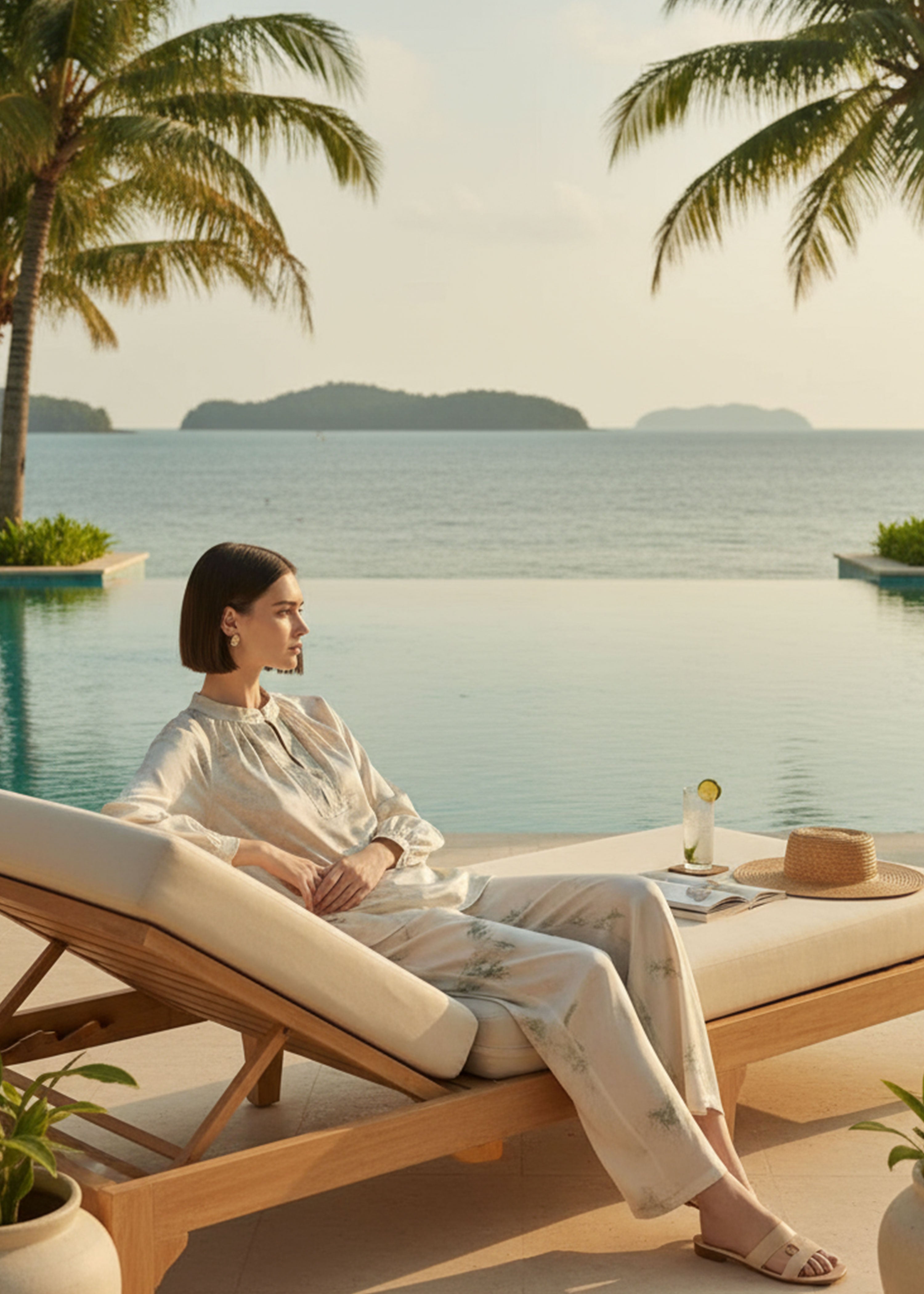 This piece blends 100% cashmere with 100% pure silk — creating a lightweight, breathable feel that transcends seasons. Elegant lace detailing adds a dancer’s touch, capturing the quiet beauty of movement.