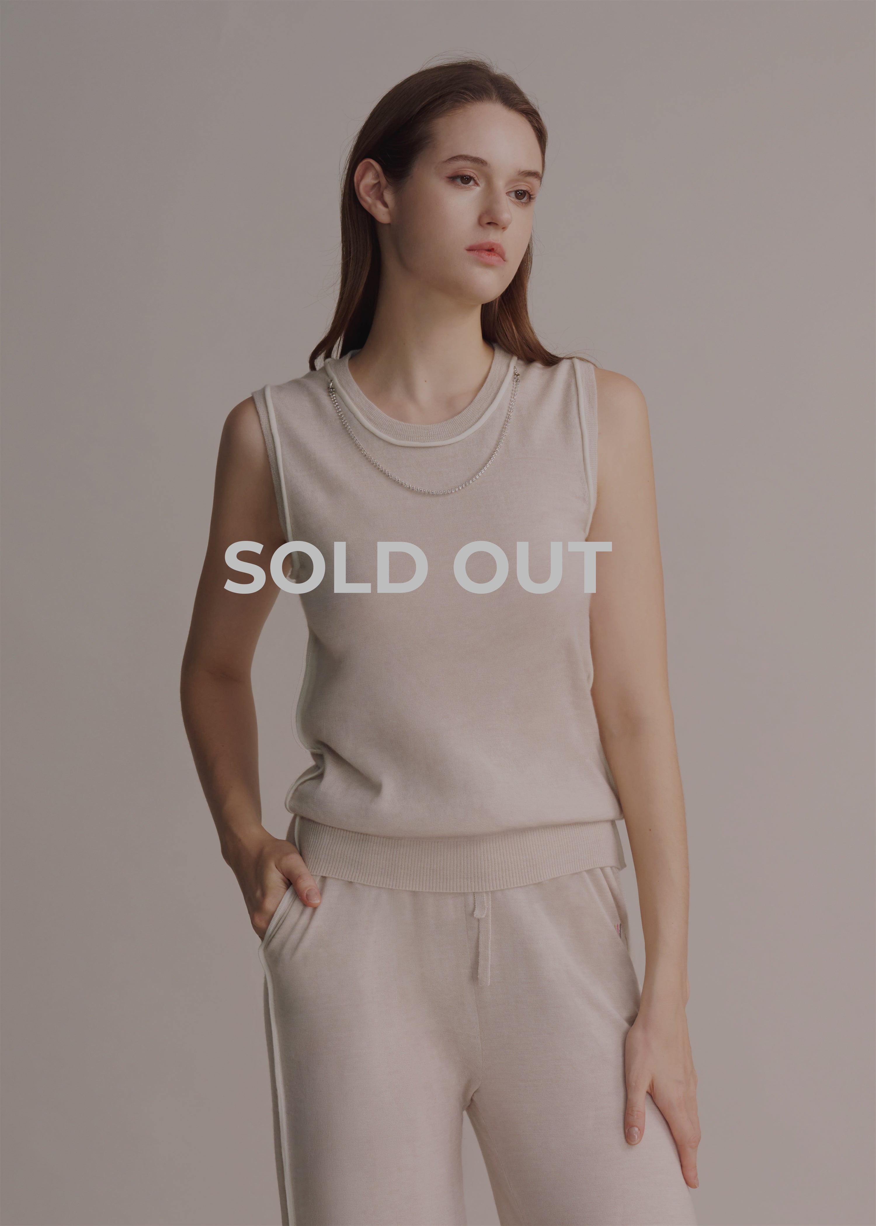Audrey Super-Soft Cashmere ROUND-Neck vest with Detachable Necklace - Beige