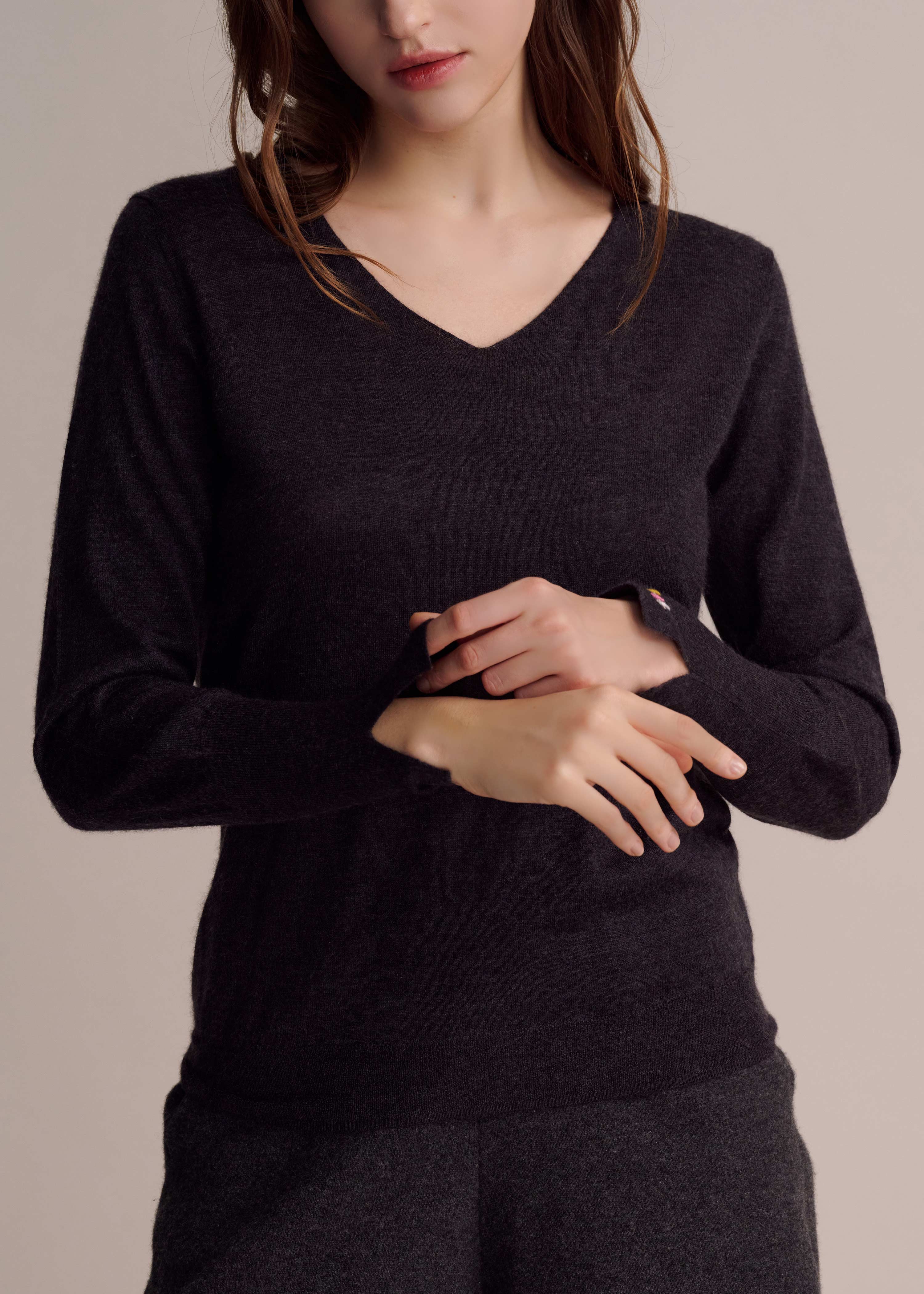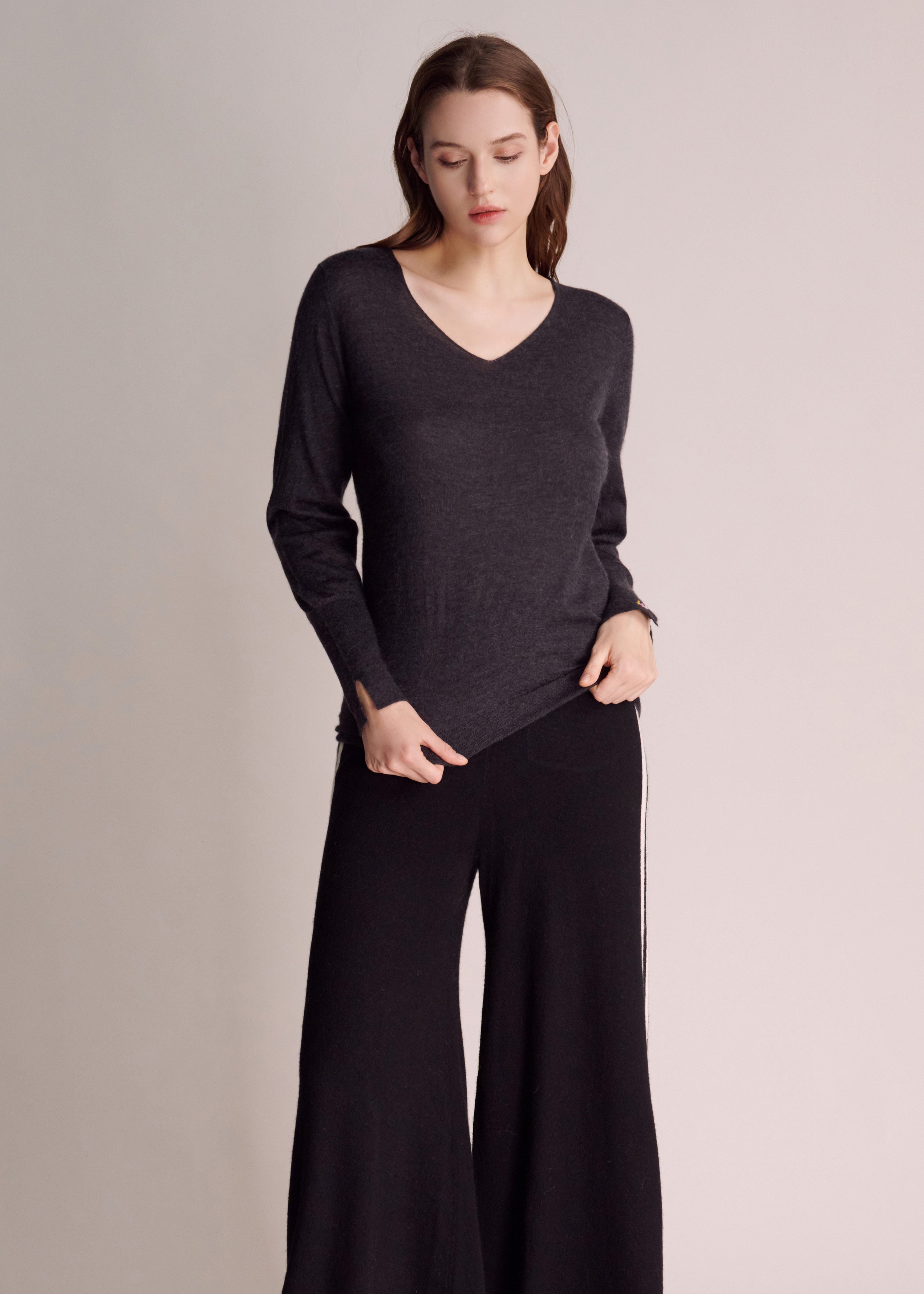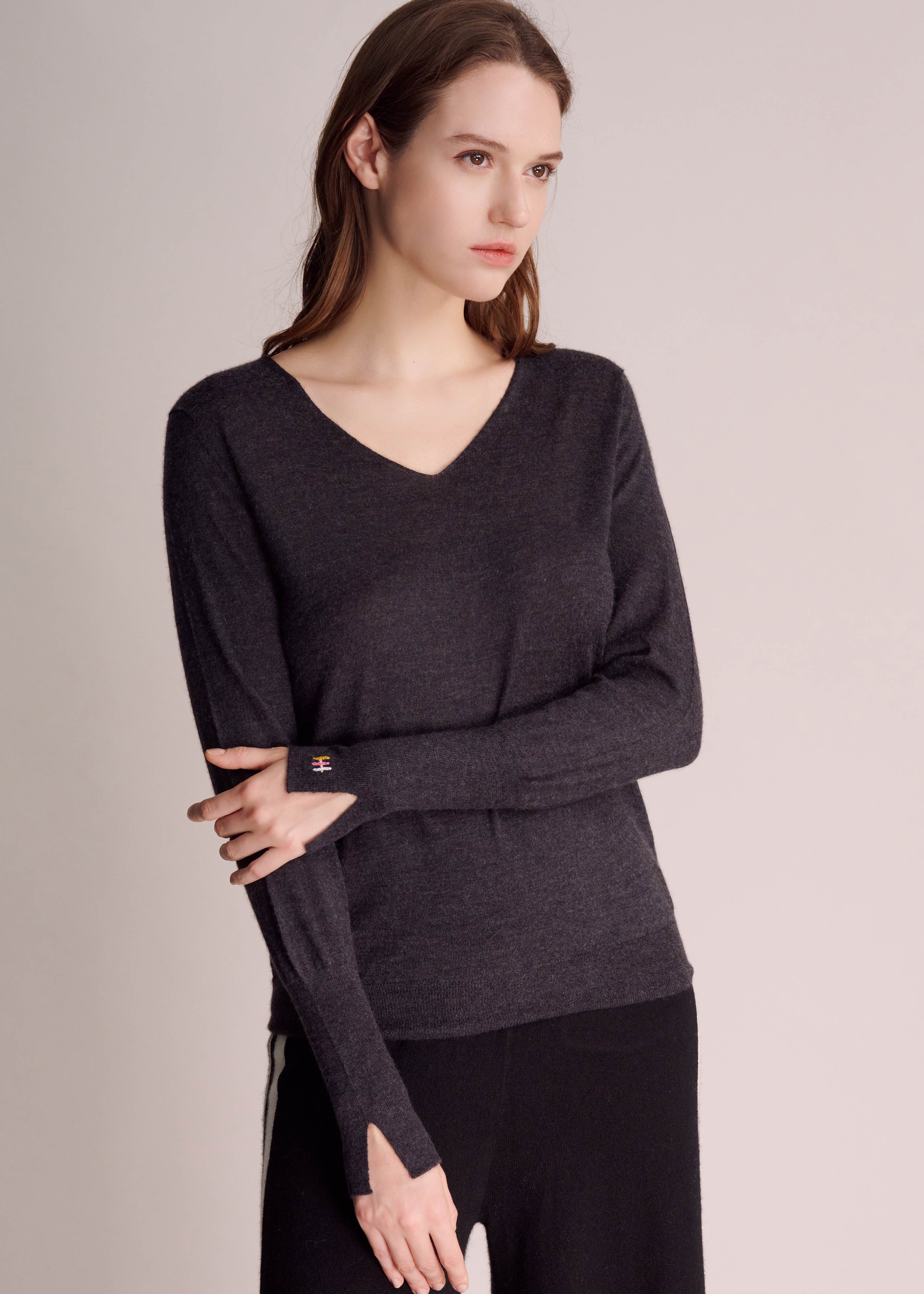 Viola Super-Soft Silky Cashmere V-neck Sweater - Charcoal