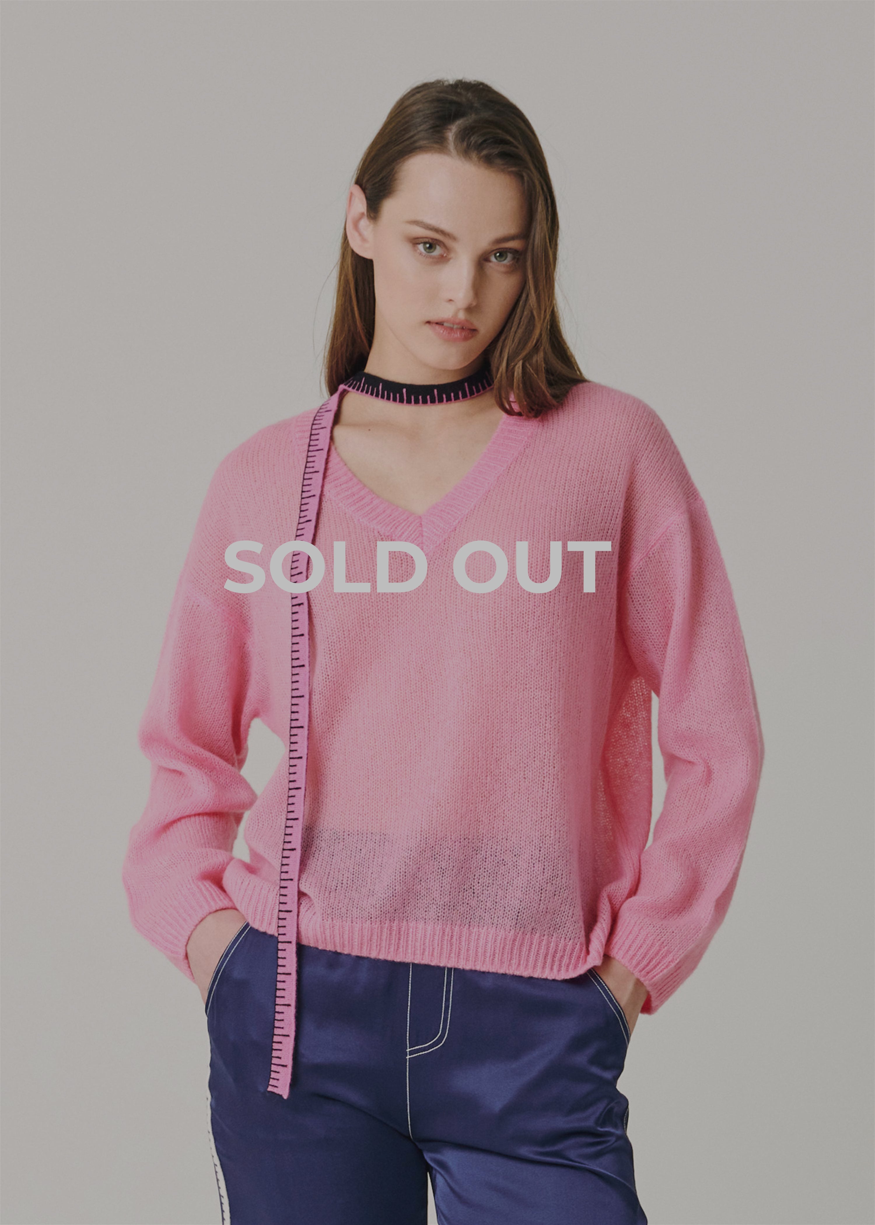 - Introducing the Rosita Ruler Ribbon V-Neck Sweater in eye-catching Fuchsia. Crafted from a luxurious blend of 75% cashmere and 25% silk, this sweater offers a soft, breathable feel perfect for summer. Its unique loose-knit design and elegant V-neck, highlighted with a Ruler ribbon, combine comfort with refined style, making it your go-to piece for effortless summer elegance.